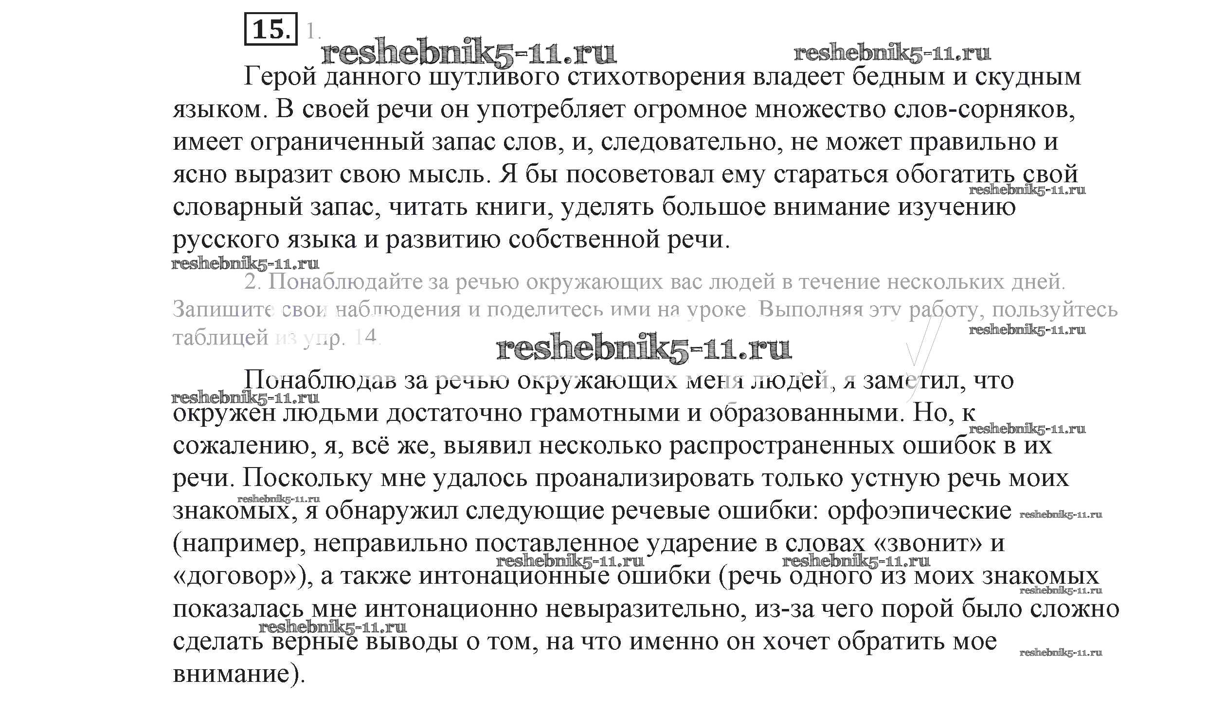 Готовая домашняя работа с ответами по Русскому языку за 9 класс Львова, Львов Учебник Мнемозина 2016 ФГОС - Упражнения 15