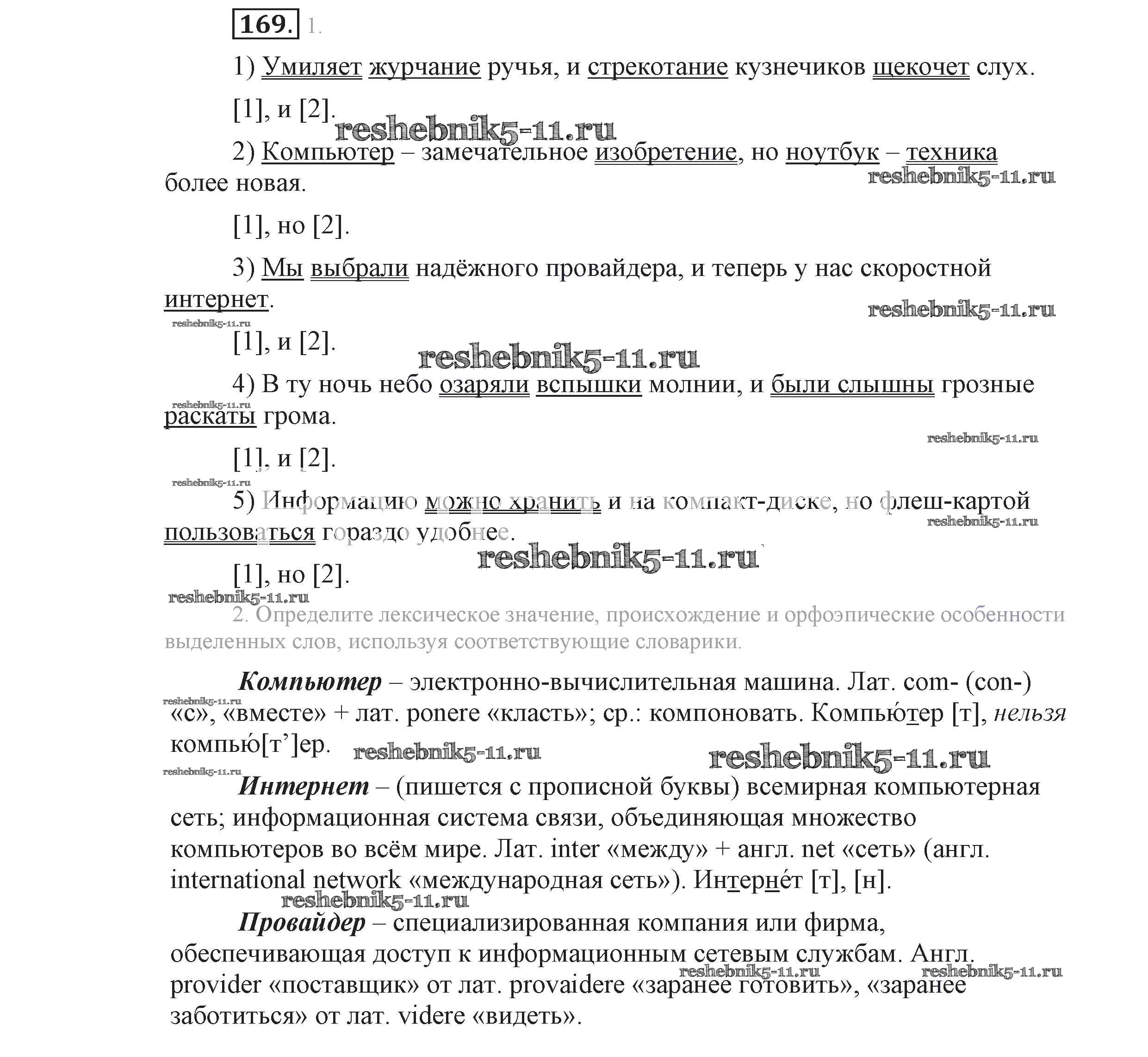 Готовая домашняя работа с ответами по Русскому языку за 9 класс Львова, Львов Учебник Мнемозина 2016 ФГОС - Упражнения 169