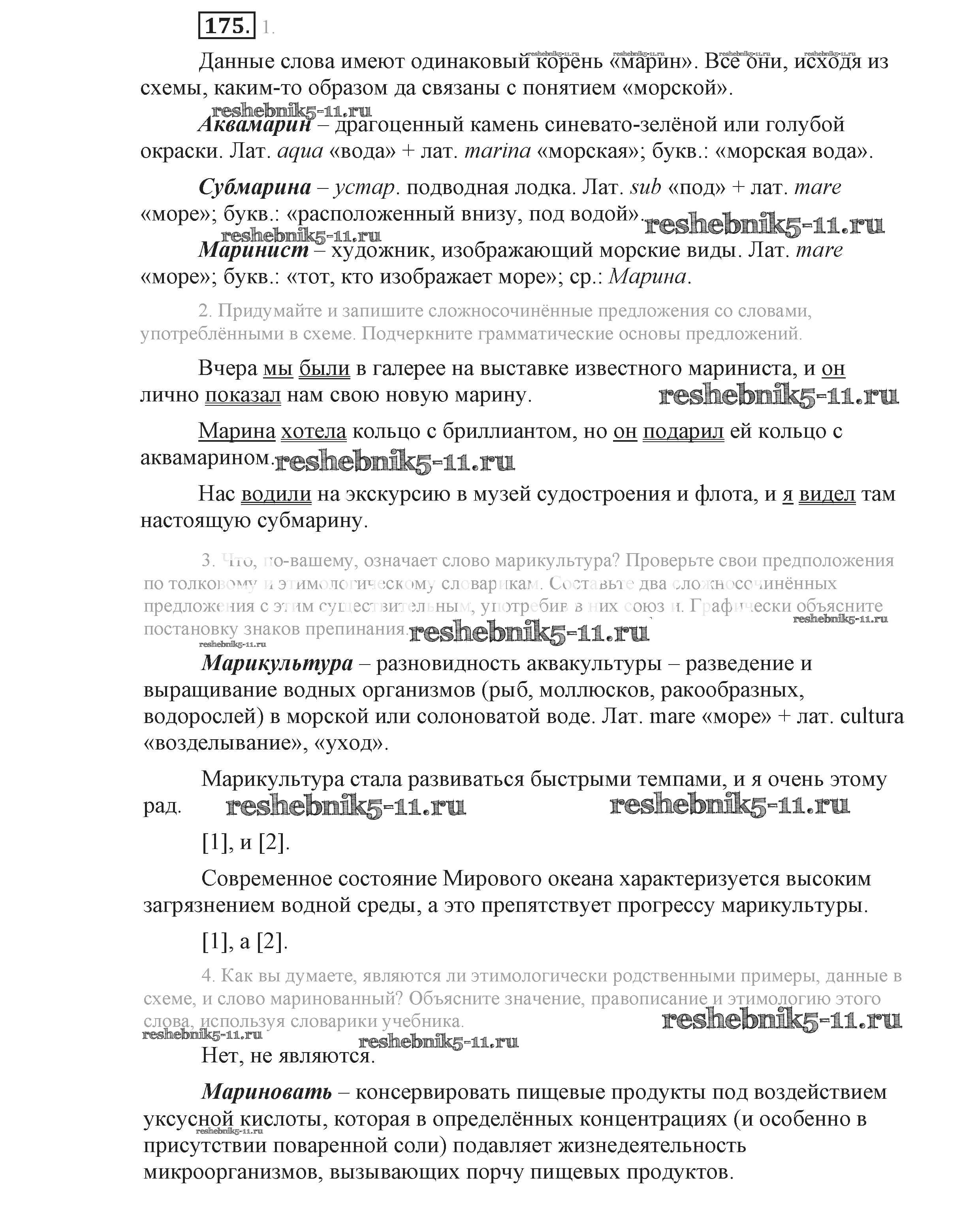 Готовая домашняя работа с ответами по Русскому языку за 9 класс Львова, Львов Учебник Мнемозина 2016 ФГОС - Упражнения 175