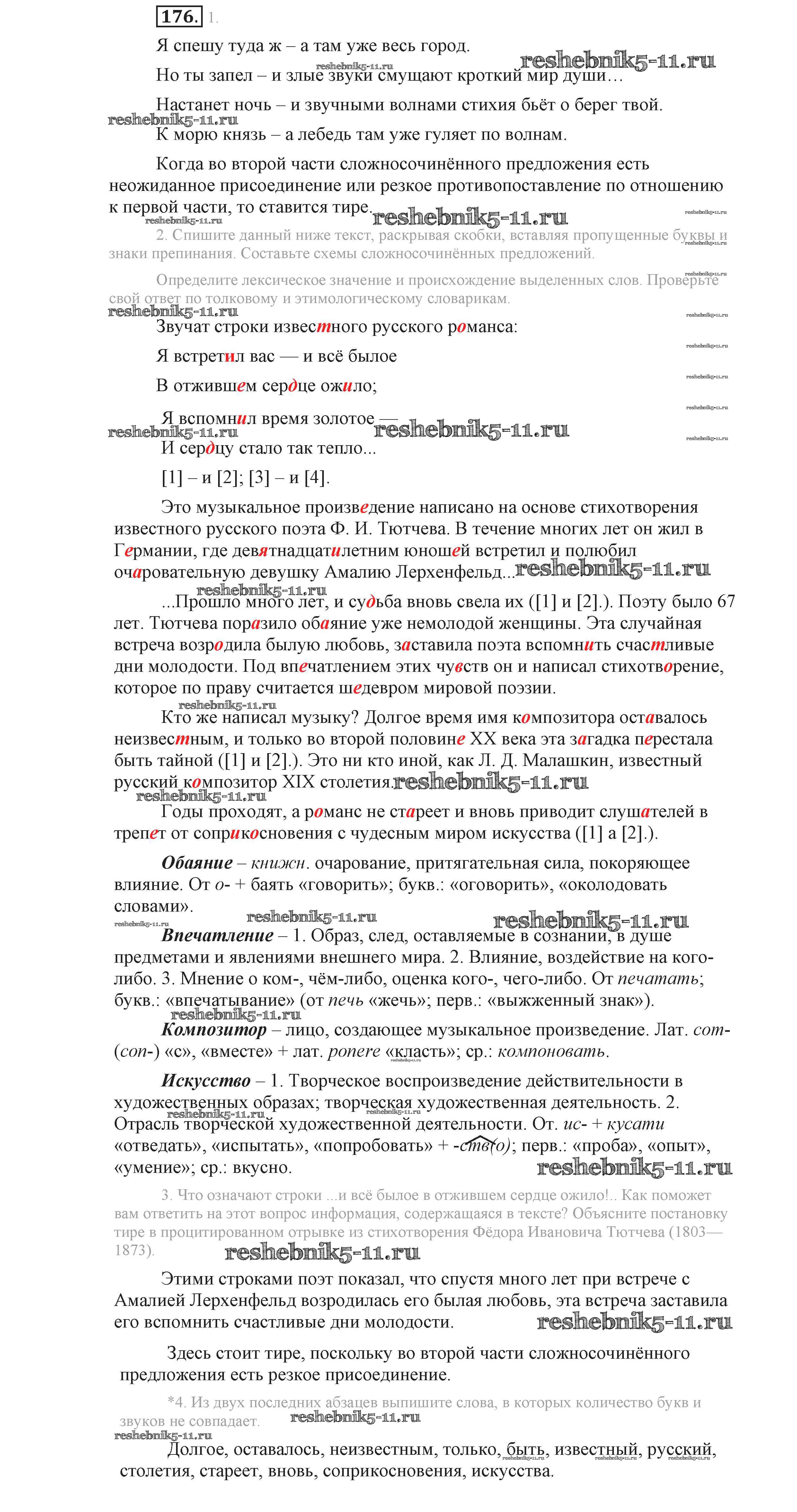 Готовая домашняя работа с ответами по Русскому языку за 9 класс Львова, Львов Учебник Мнемозина 2016 ФГОС - Упражнения 176