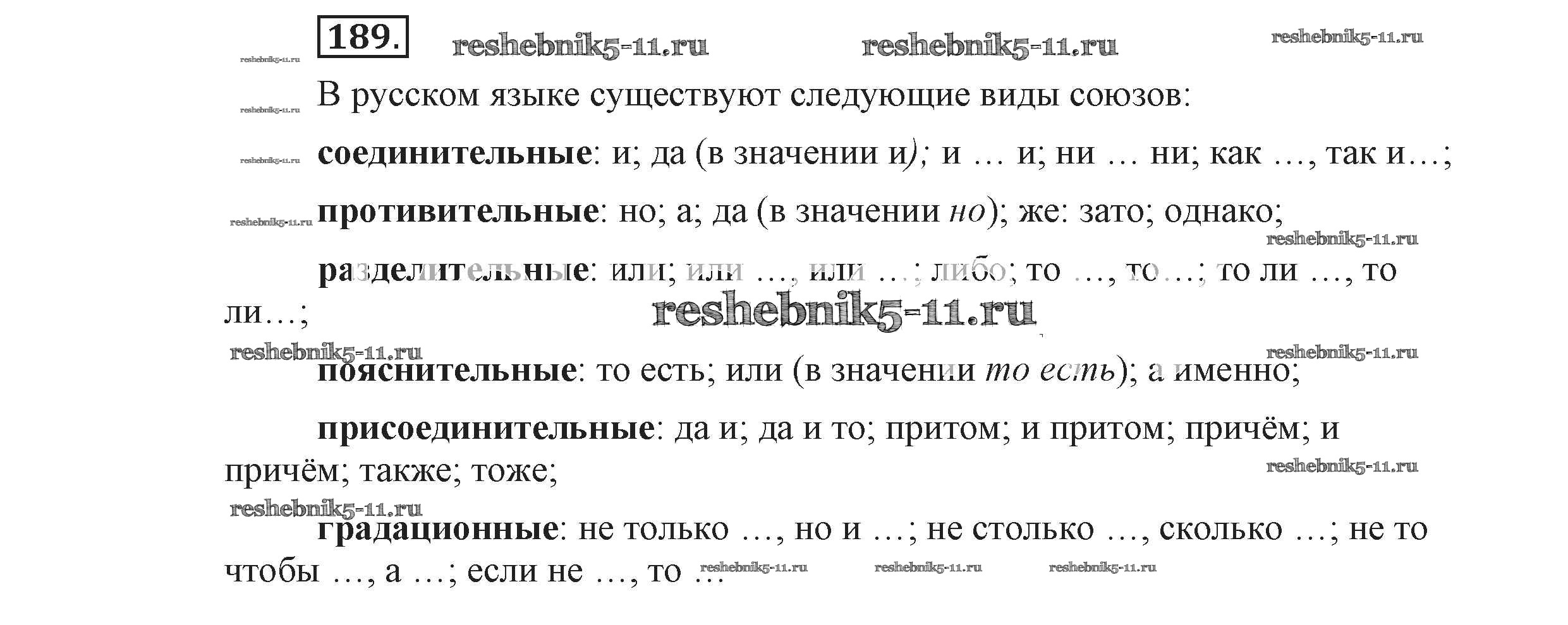 Готовая домашняя работа с ответами по Русскому языку за 9 класс Львова, Львов Учебник Мнемозина 2016 ФГОС - Упражнения 189