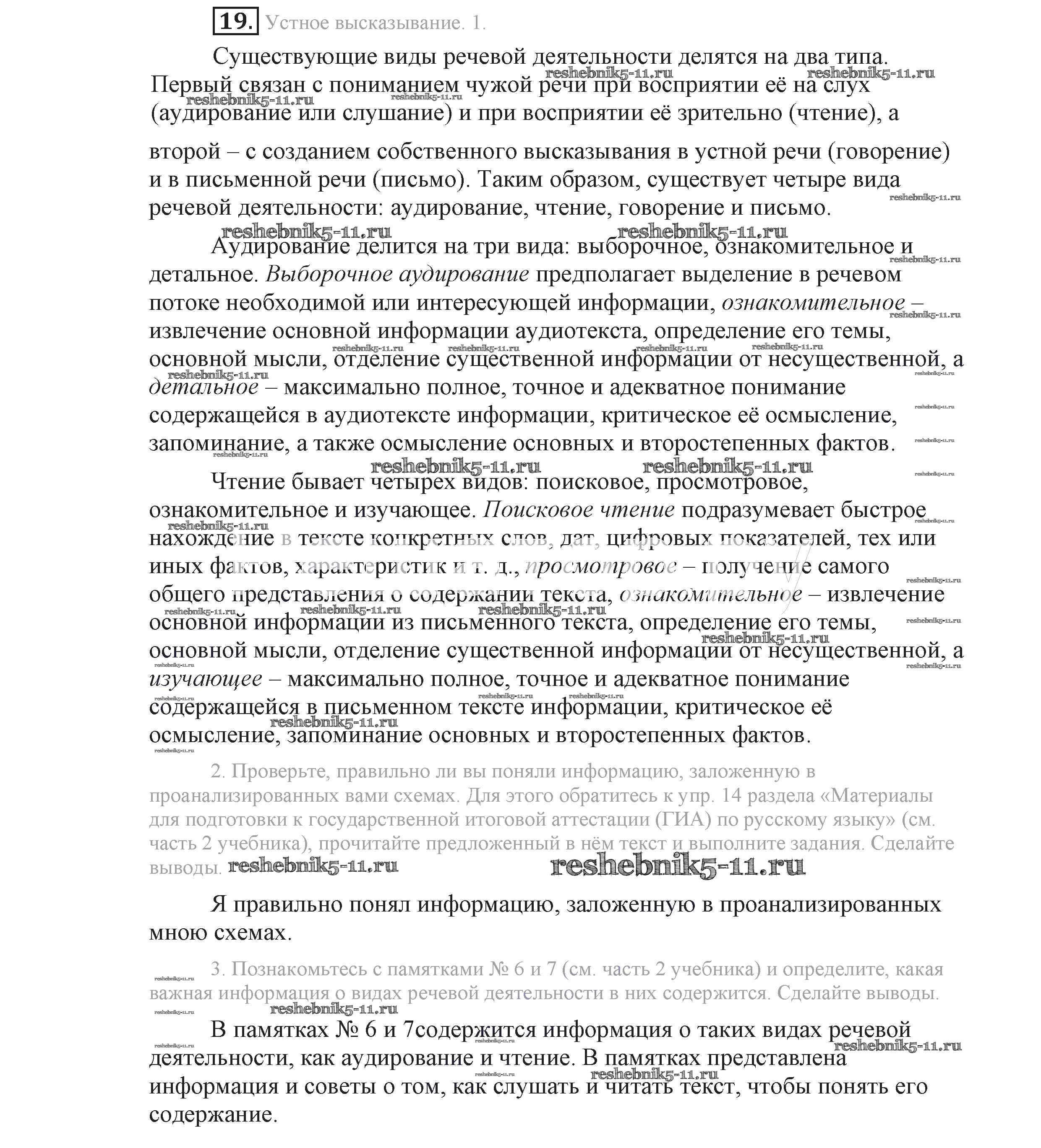 Готовая домашняя работа с ответами по Русскому языку за 9 класс Львова, Львов Учебник Мнемозина 2016 ФГОС - Упражнения 19