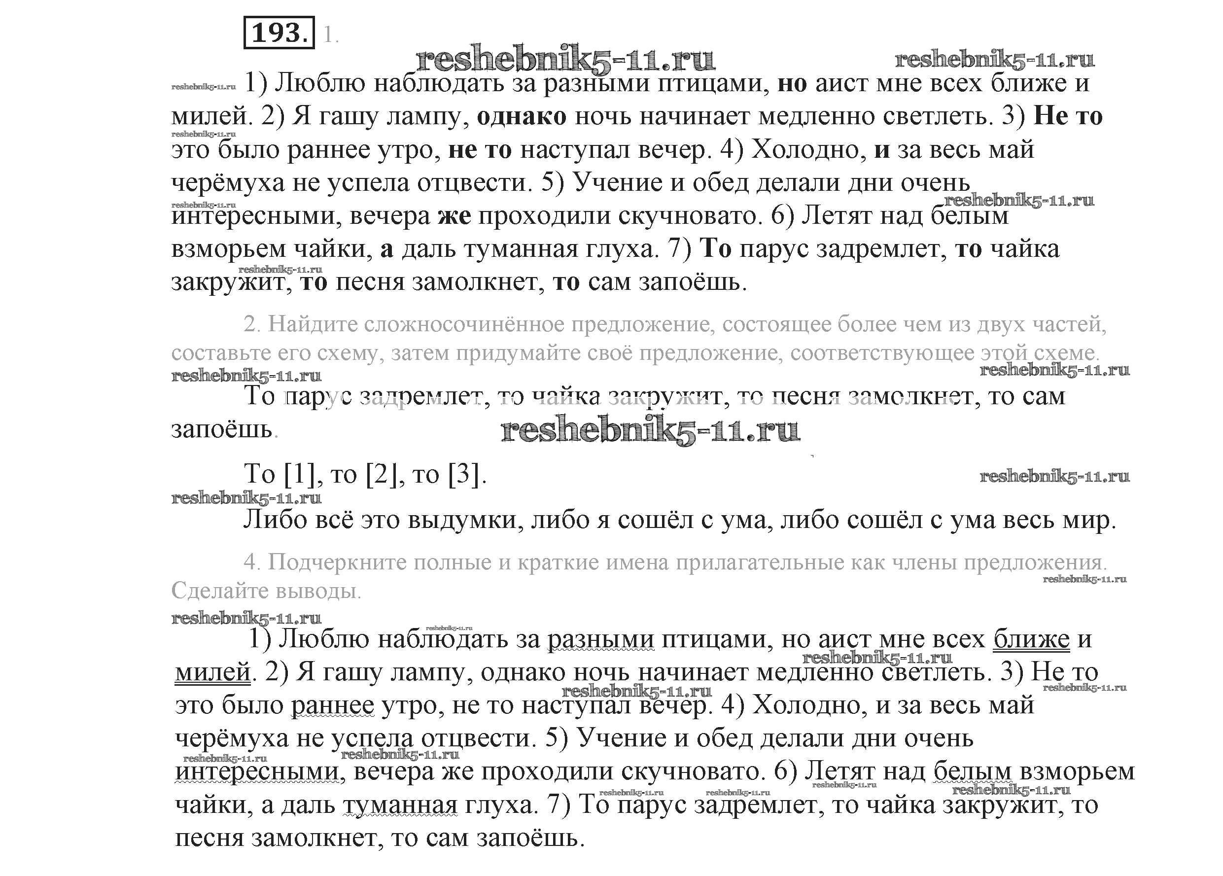 Готовая домашняя работа с ответами по Русскому языку за 9 класс Львова, Львов Учебник Мнемозина 2016 ФГОС - Упражнения 193