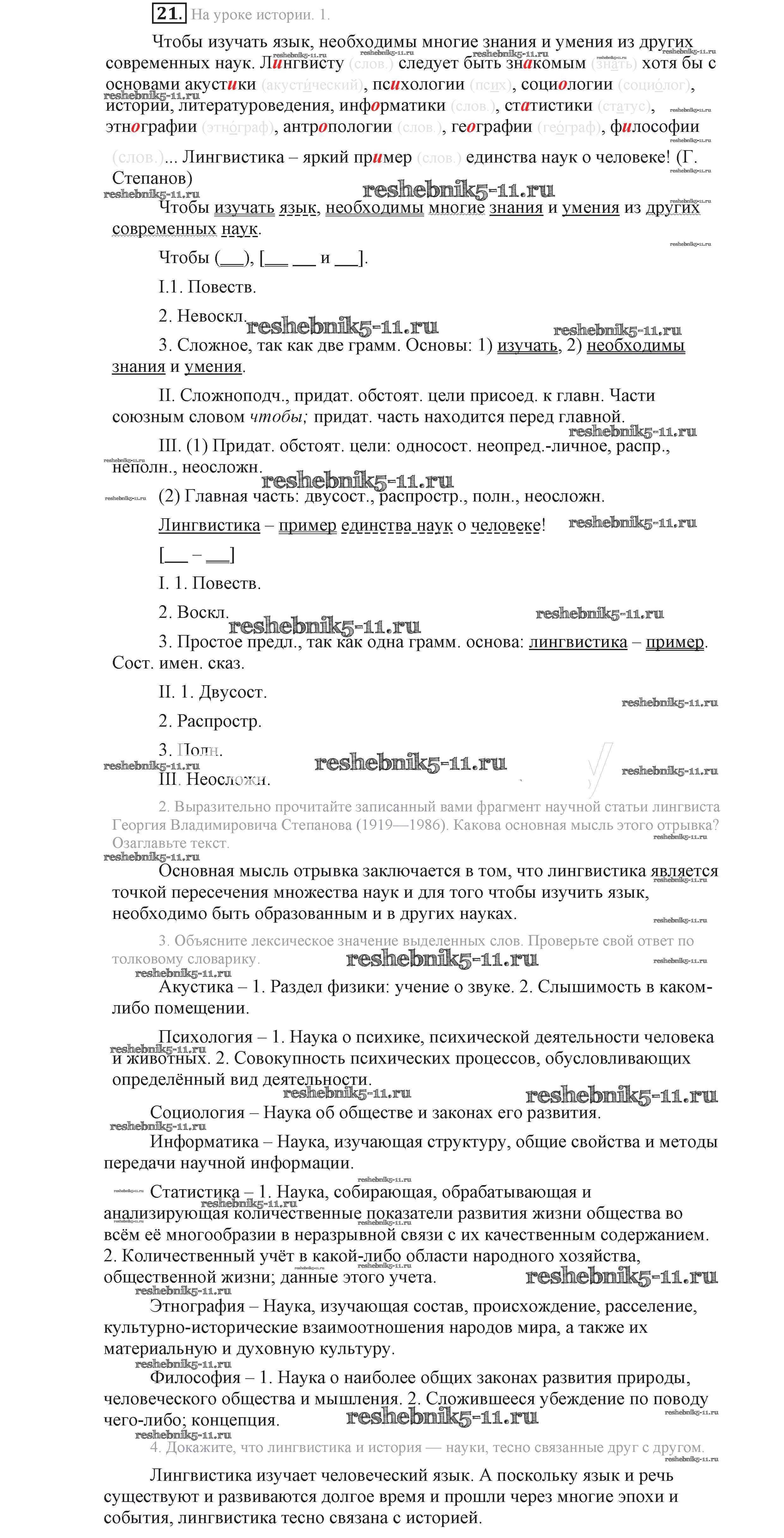 Готовая домашняя работа с ответами по Русскому языку за 9 класс Львова, Львов Учебник Мнемозина 2016 ФГОС - Упражнения 21