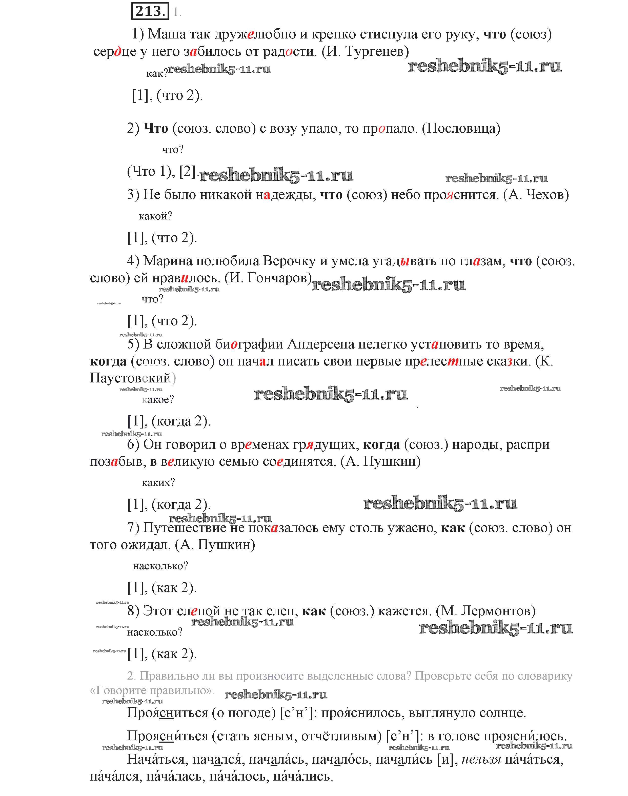 Готовая домашняя работа с ответами по Русскому языку за 9 класс Львова, Львов Учебник Мнемозина 2016 ФГОС - Упражнения 213
