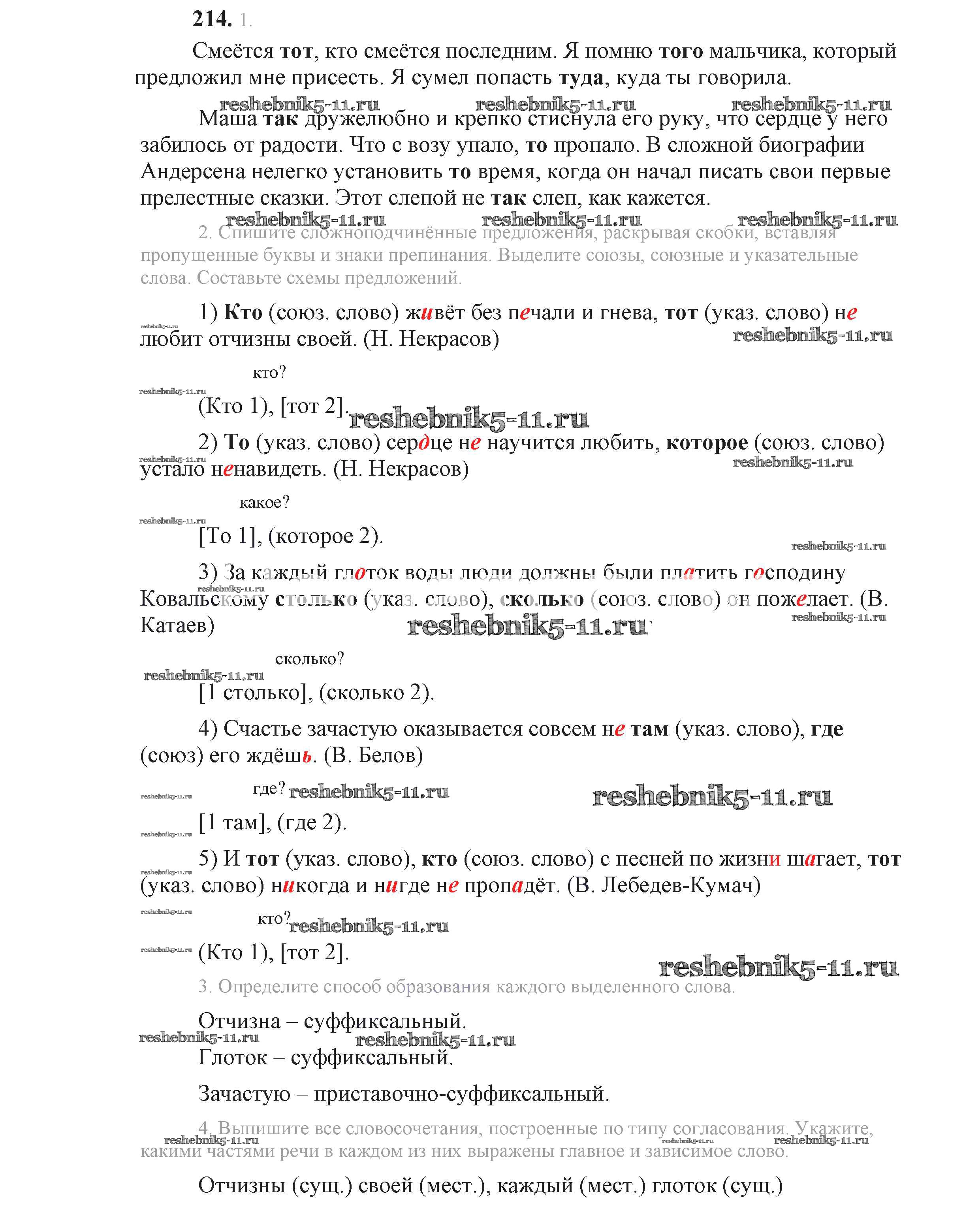 Готовая домашняя работа с ответами по Русскому языку за 9 класс Львова, Львов Учебник Мнемозина 2016 ФГОС - Упражнения 214