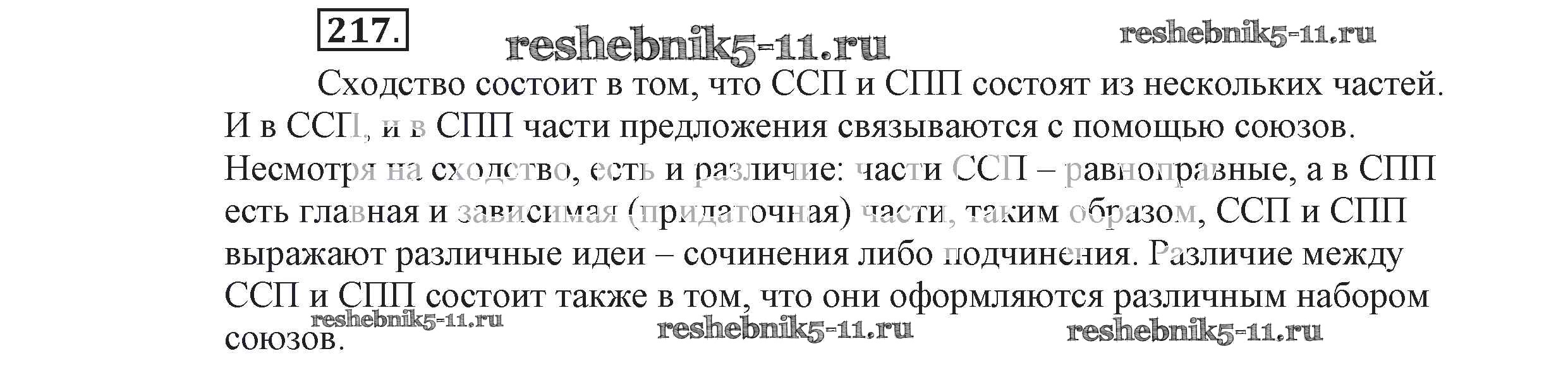Готовая домашняя работа с ответами по Русскому языку за 9 класс Львова, Львов Учебник Мнемозина 2016 ФГОС - Упражнения 217