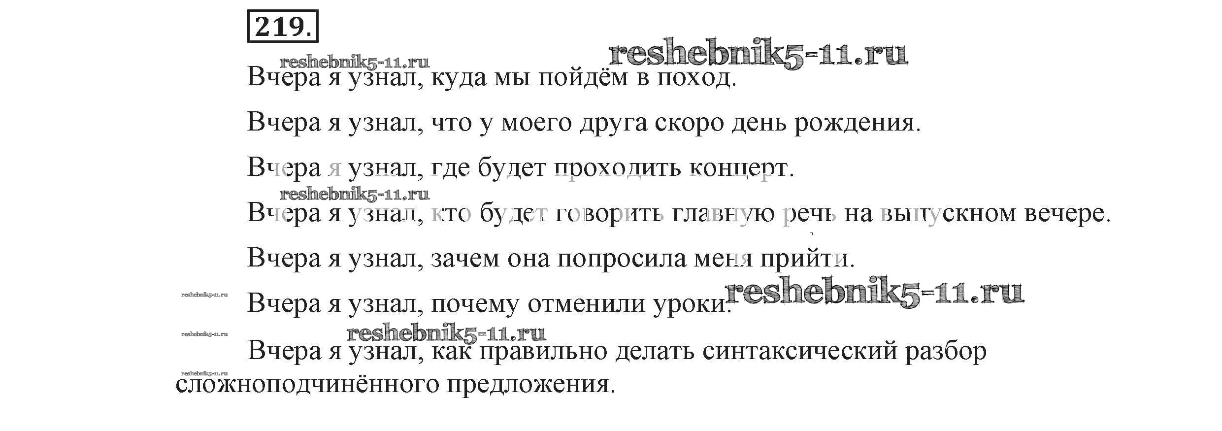 Готовая домашняя работа с ответами по Русскому языку за 9 класс Львова, Львов Учебник Мнемозина 2016 ФГОС - Упражнения 219