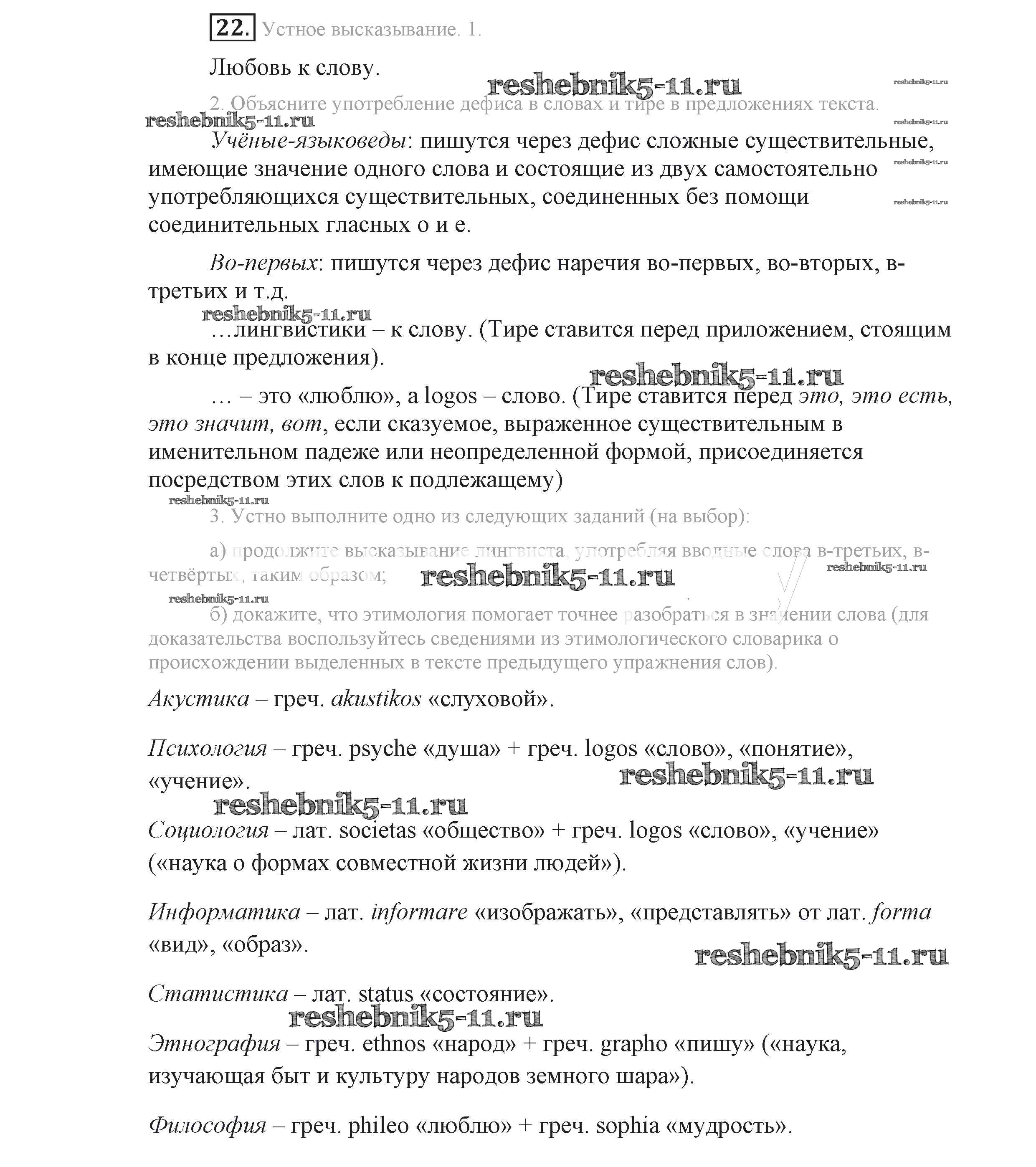 Готовая домашняя работа с ответами по Русскому языку за 9 класс Львова, Львов Учебник Мнемозина 2016 ФГОС - Упражнения 22