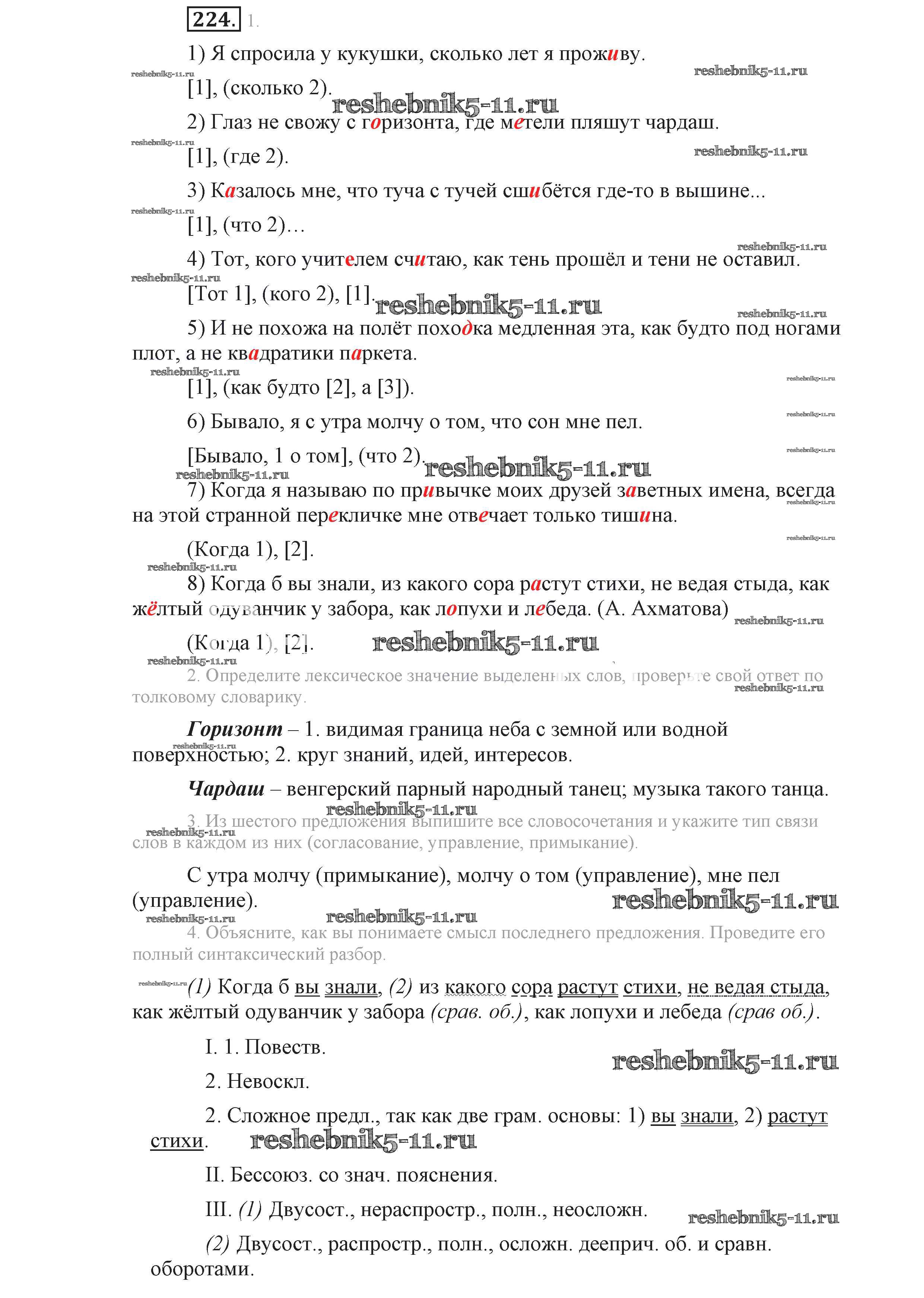 Готовая домашняя работа с ответами по Русскому языку за 9 класс Львова, Львов Учебник Мнемозина 2016 ФГОС - Упражнения 224