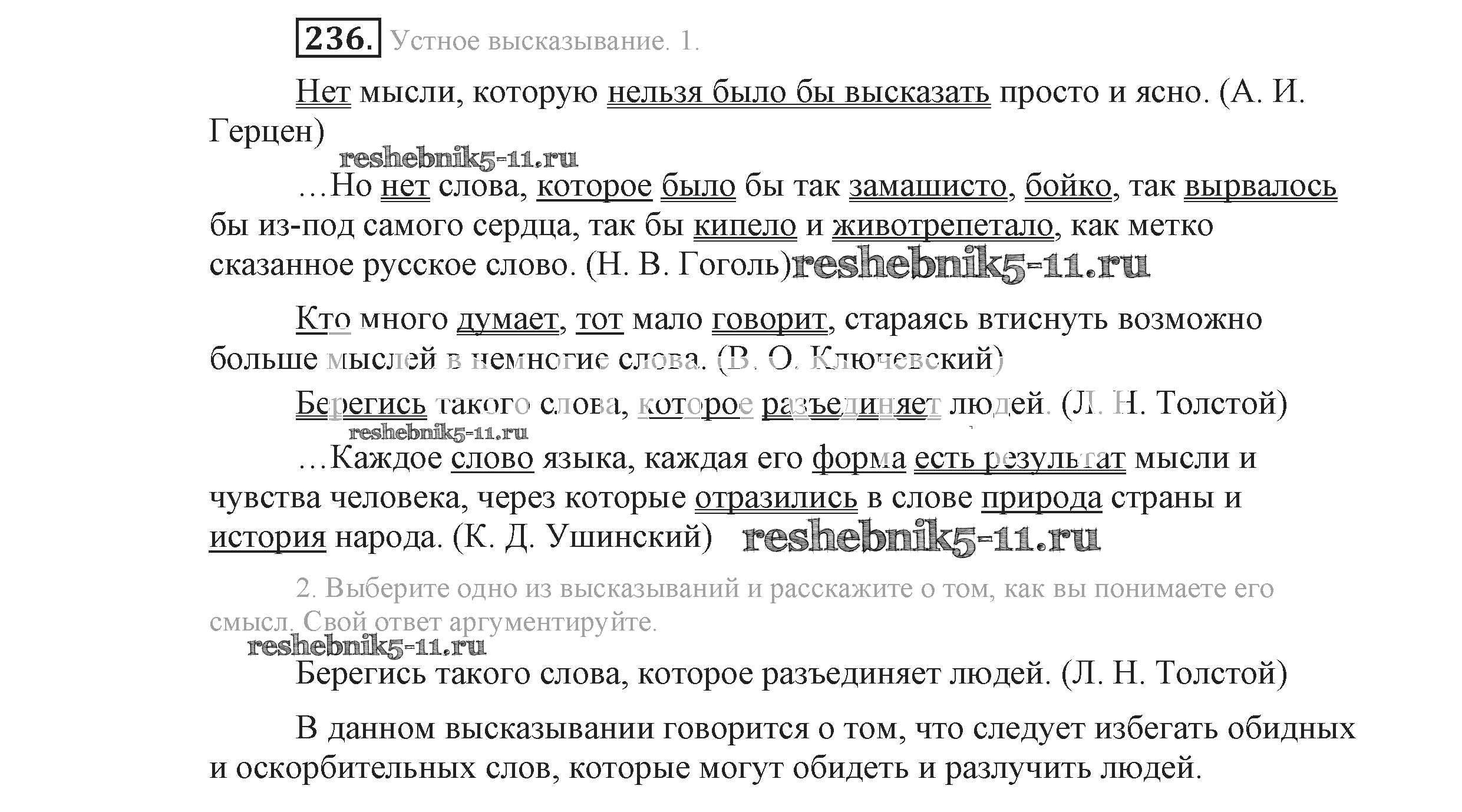 Готовая домашняя работа с ответами по Русскому языку за 9 класс Львова, Львов Учебник Мнемозина 2016 ФГОС - Упражнения 236