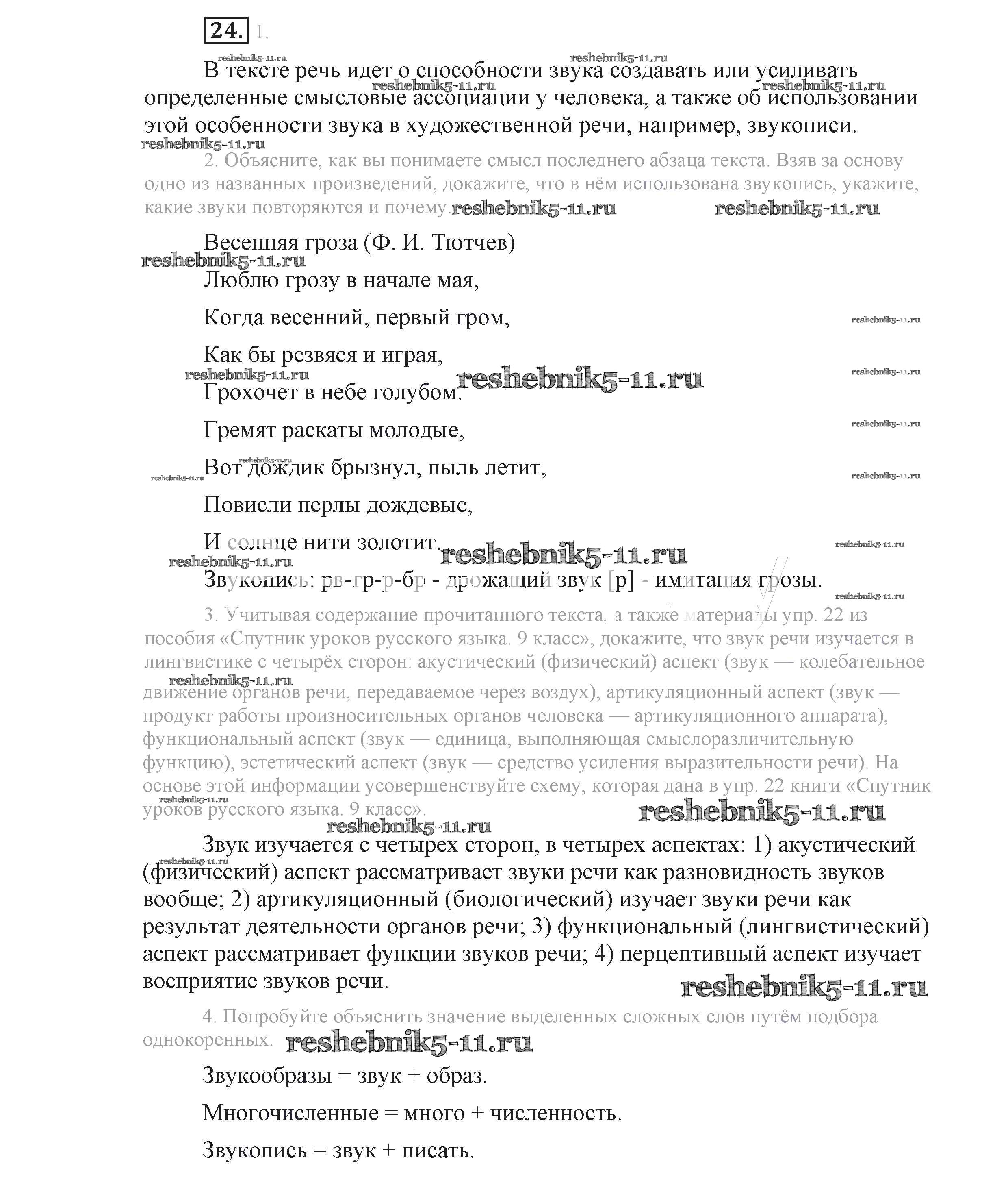 Готовая домашняя работа с ответами по Русскому языку за 9 класс Львова, Львов Учебник Мнемозина 2016 ФГОС - Упражнения 24