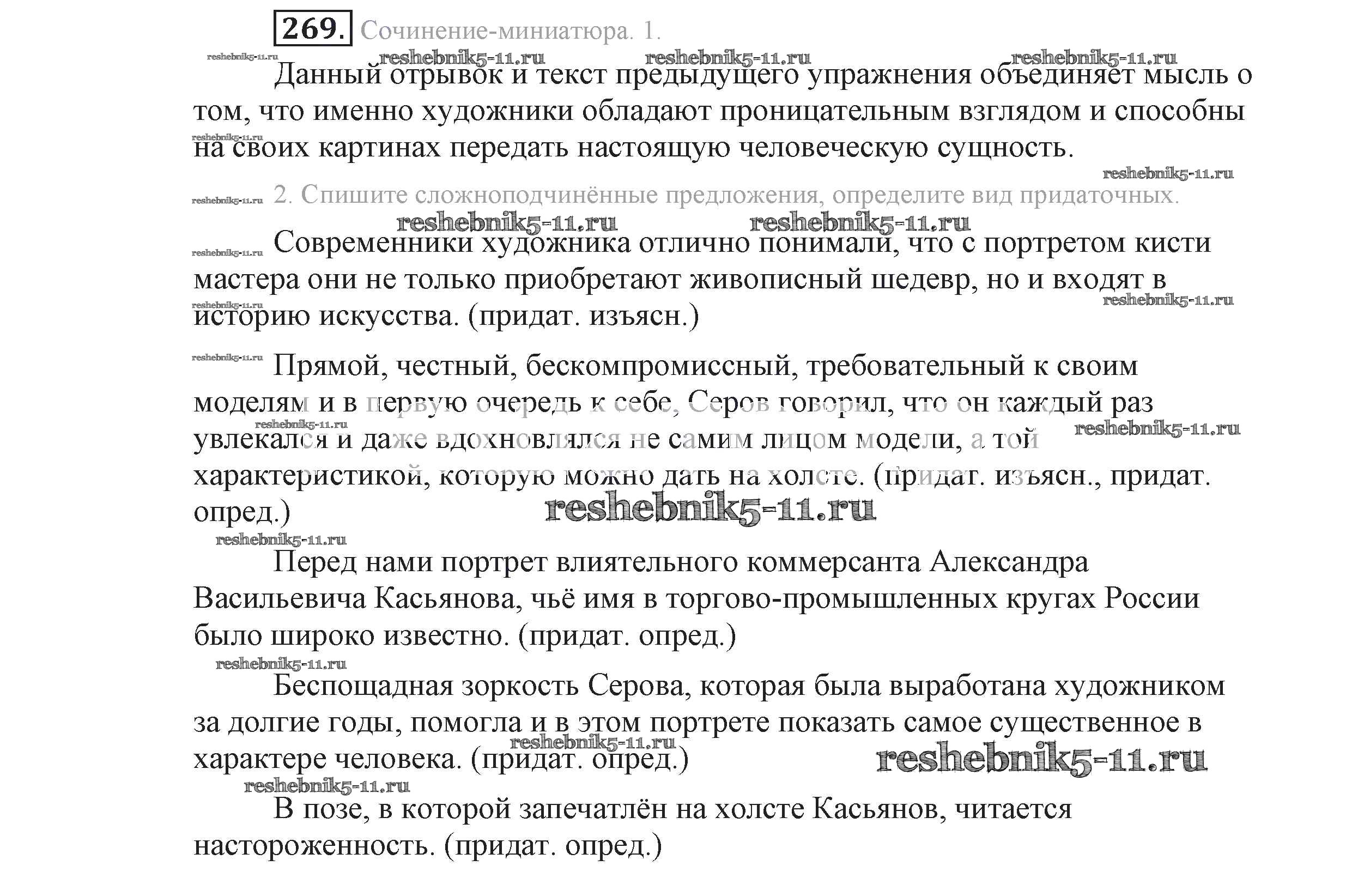 Готовая домашняя работа с ответами по Русскому языку за 9 класс Львова, Львов Учебник Мнемозина 2016 ФГОС - Упражнения 269