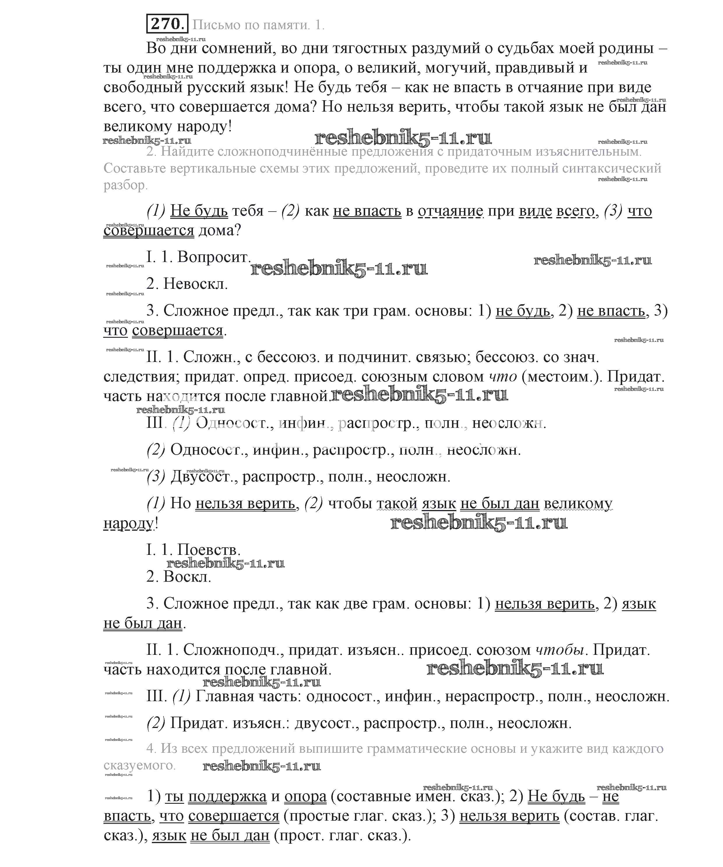 Готовая домашняя работа с ответами по Русскому языку за 9 класс Львова, Львов Учебник Мнемозина 2016 ФГОС - Упражнения 270