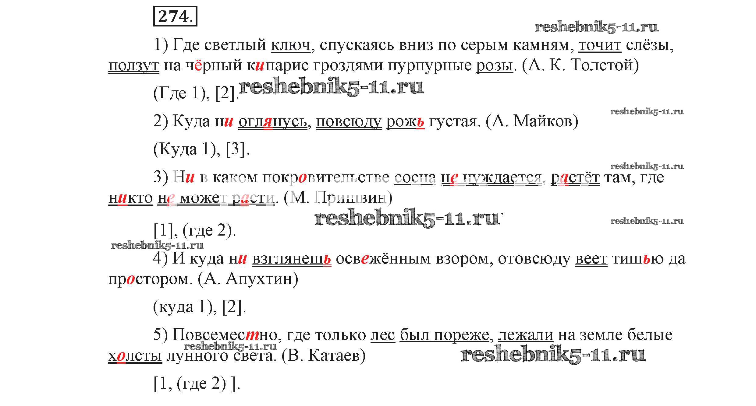 Готовая домашняя работа с ответами по Русскому языку за 9 класс Львова, Львов Учебник Мнемозина 2016 ФГОС - Упражнения 274