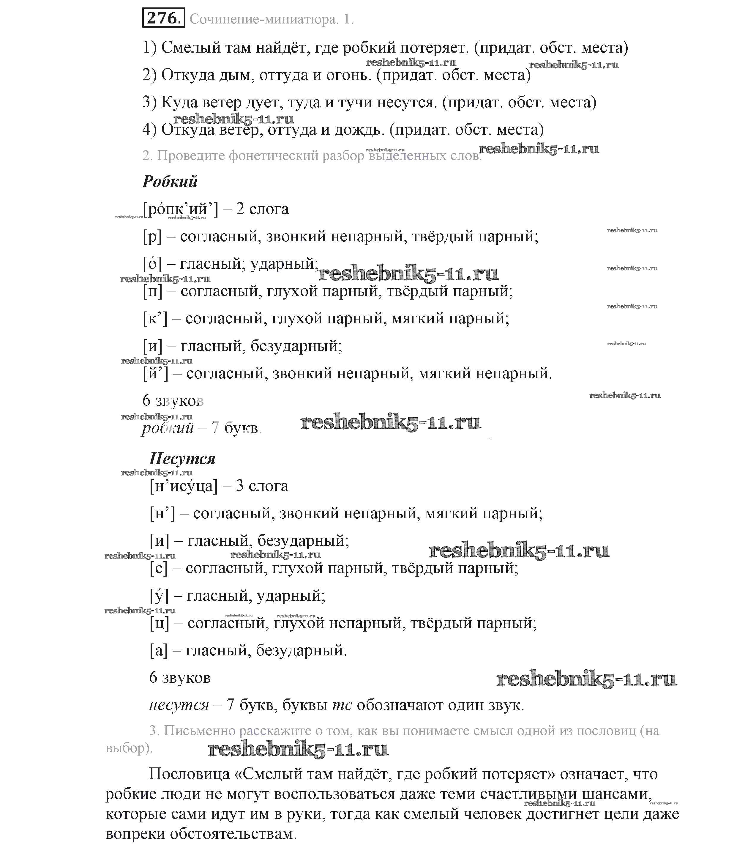 Готовая домашняя работа с ответами по Русскому языку за 9 класс Львова, Львов Учебник Мнемозина 2016 ФГОС - Упражнения 276