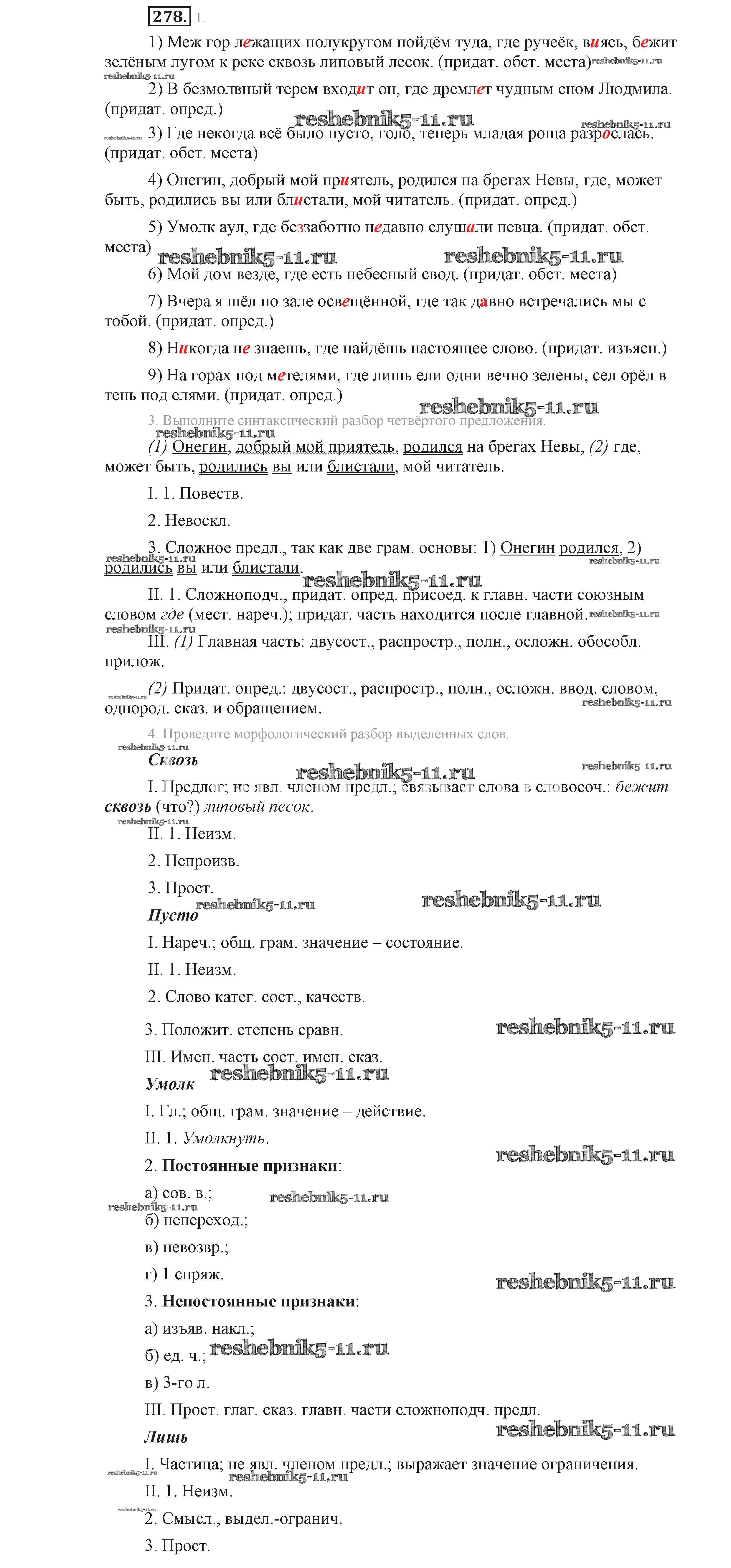 Готовая домашняя работа с ответами по Русскому языку за 9 класс Львова, Львов Учебник Мнемозина 2016 ФГОС - Упражнения 278