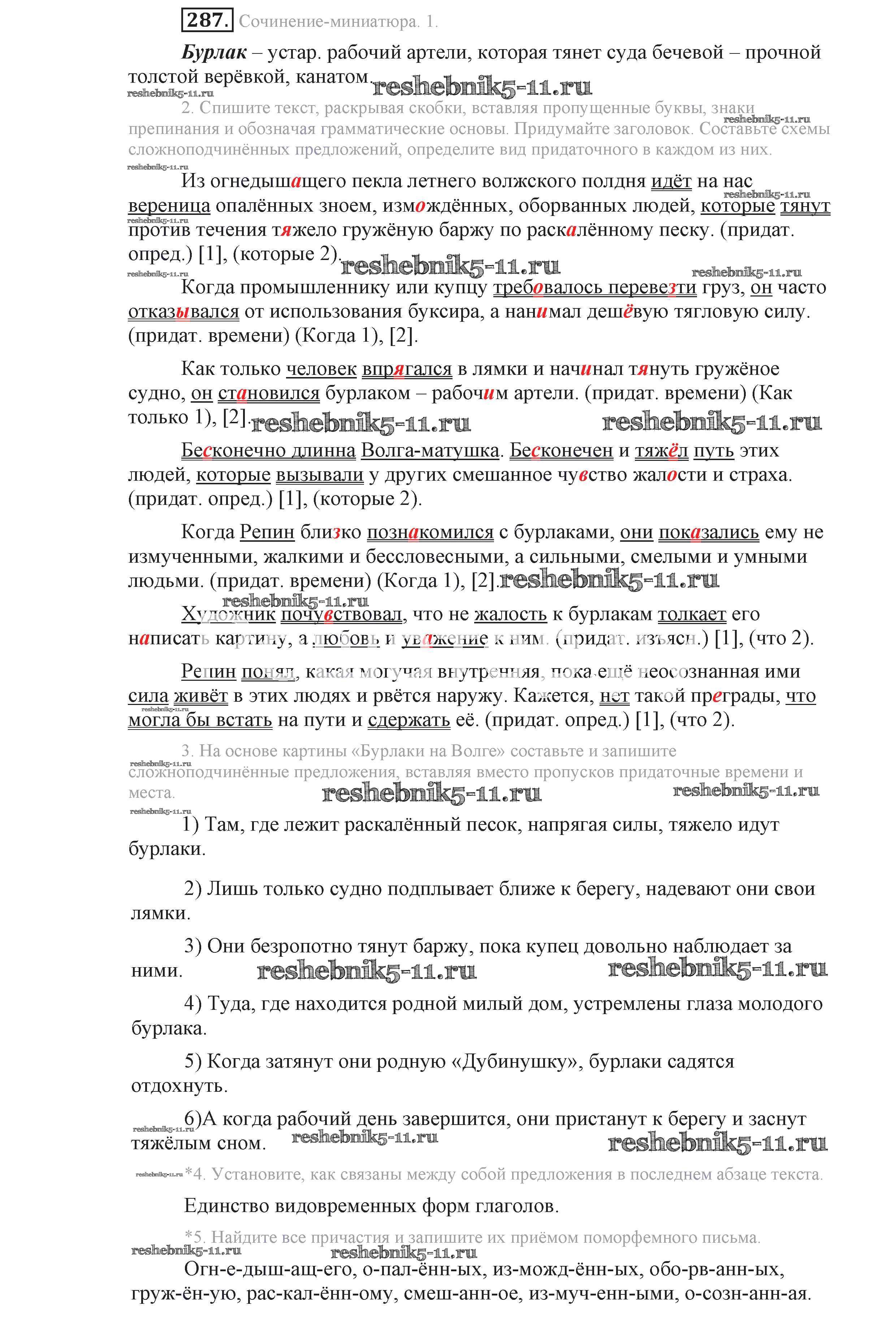 Готовая домашняя работа с ответами по Русскому языку за 9 класс Львова, Львов Учебник Мнемозина 2016 ФГОС - Упражнения 287