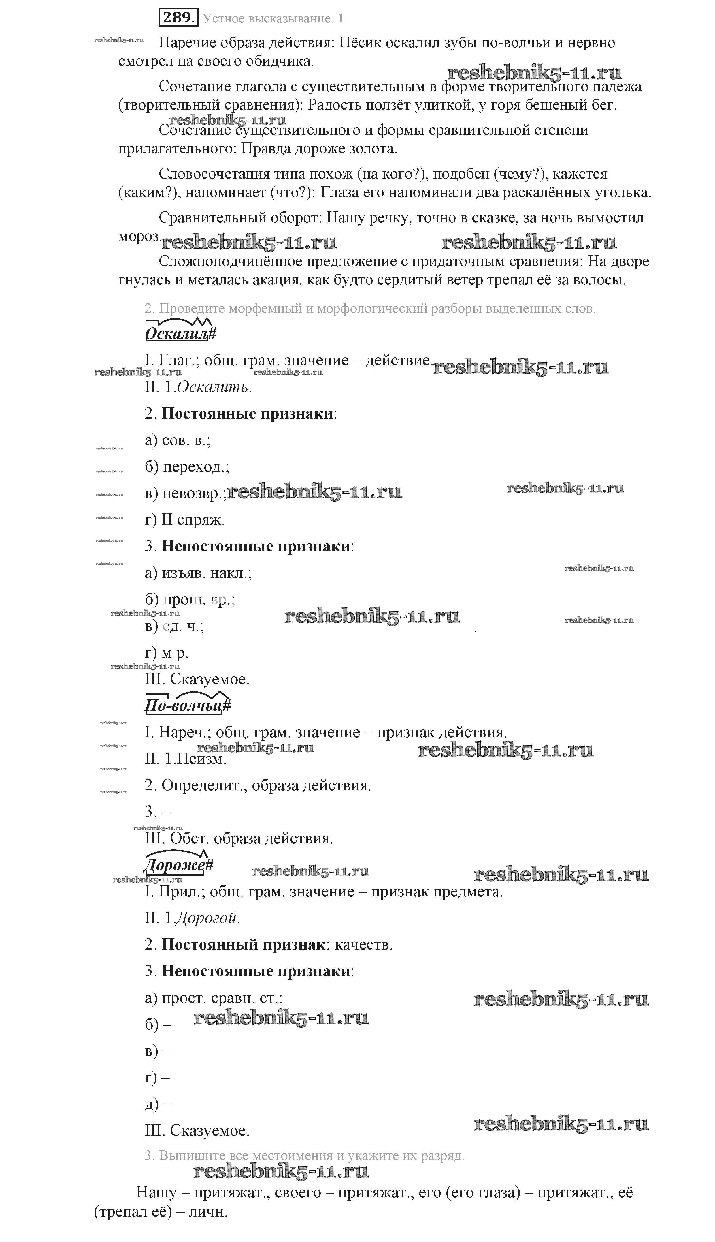 Готовая домашняя работа с ответами по Русскому языку за 9 класс Львова, Львов Учебник Мнемозина 2016 ФГОС - Упражнения 289