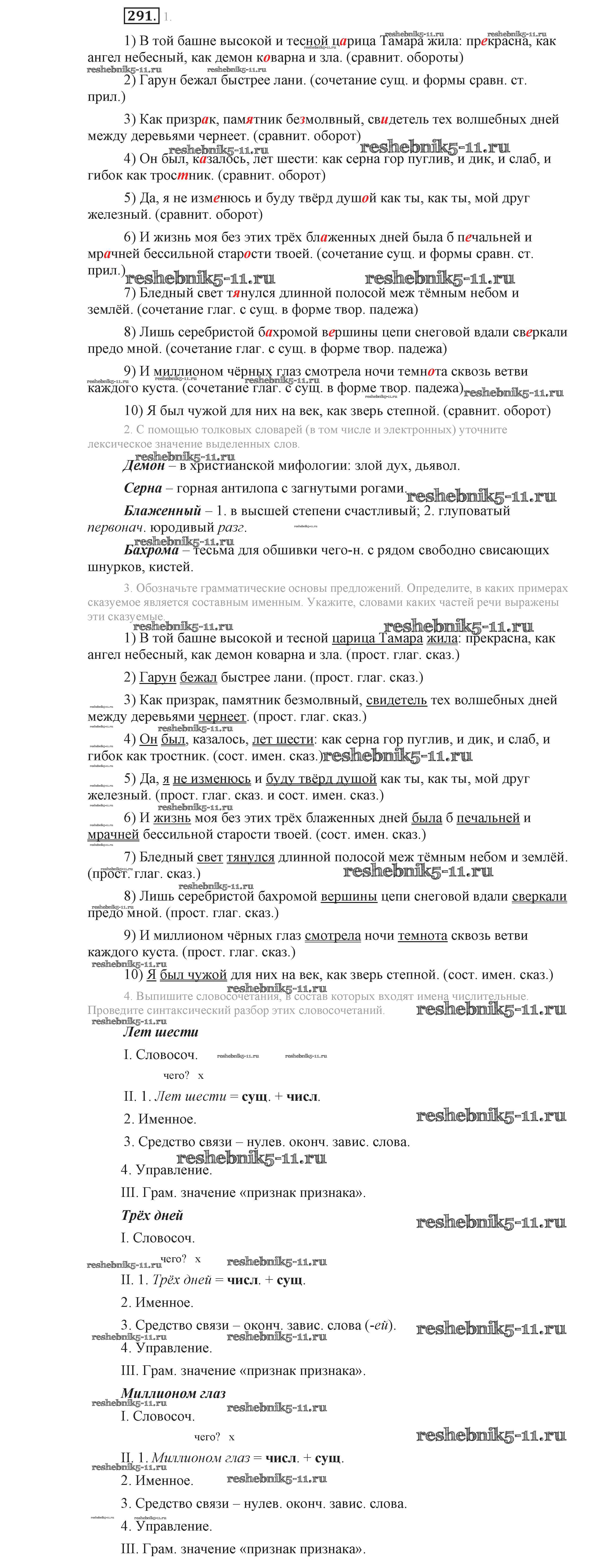 Готовая домашняя работа с ответами по Русскому языку за 9 класс Львова, Львов Учебник Мнемозина 2016 ФГОС - Упражнения 291