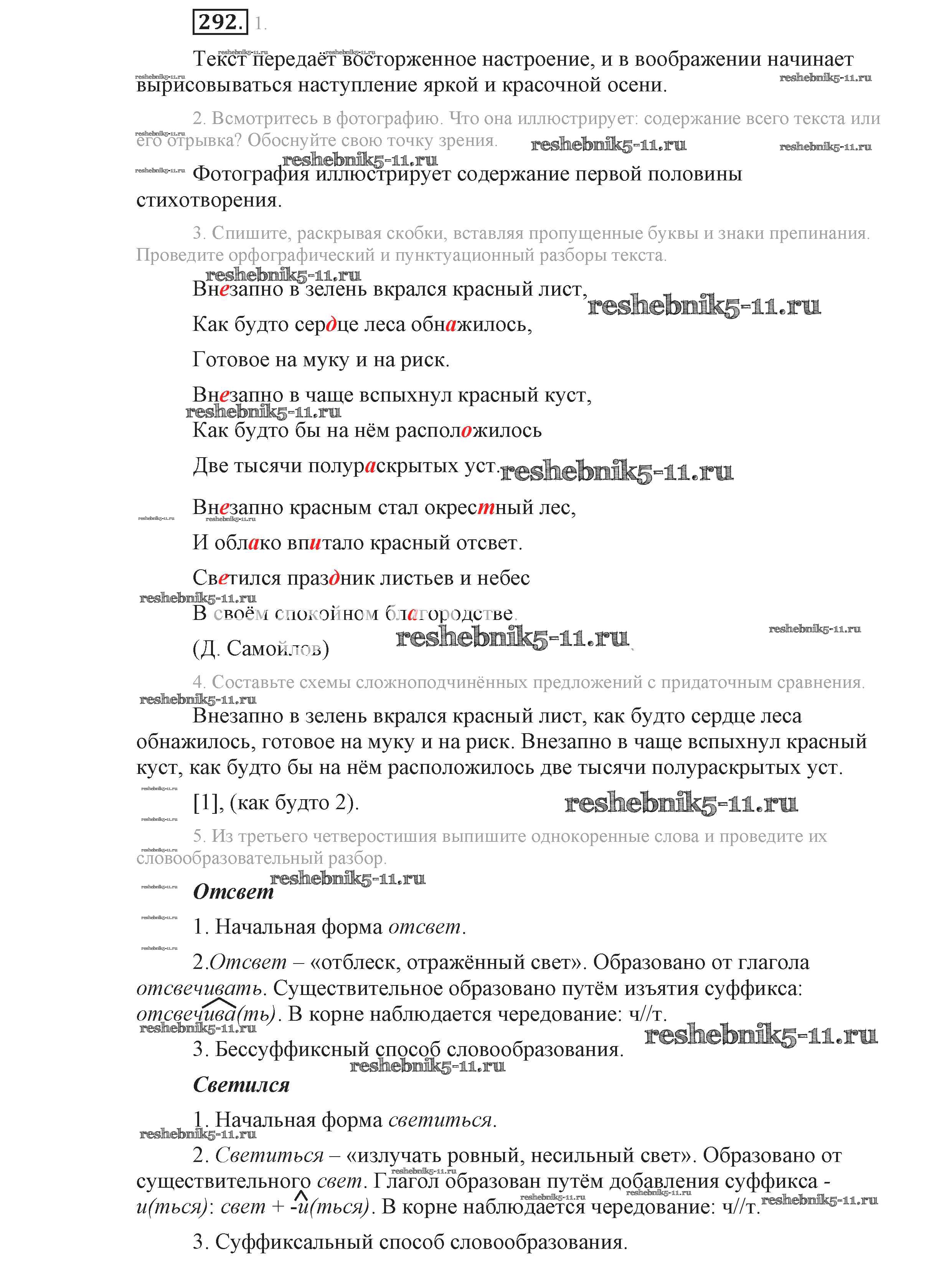 Готовая домашняя работа с ответами по Русскому языку за 9 класс Львова, Львов Учебник Мнемозина 2016 ФГОС - Упражнения 292