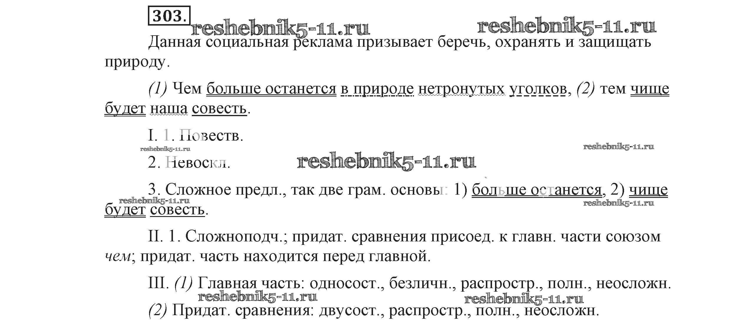 Готовая домашняя работа с ответами по Русскому языку за 9 класс Львова, Львов Учебник Мнемозина 2016 ФГОС - Упражнения 303