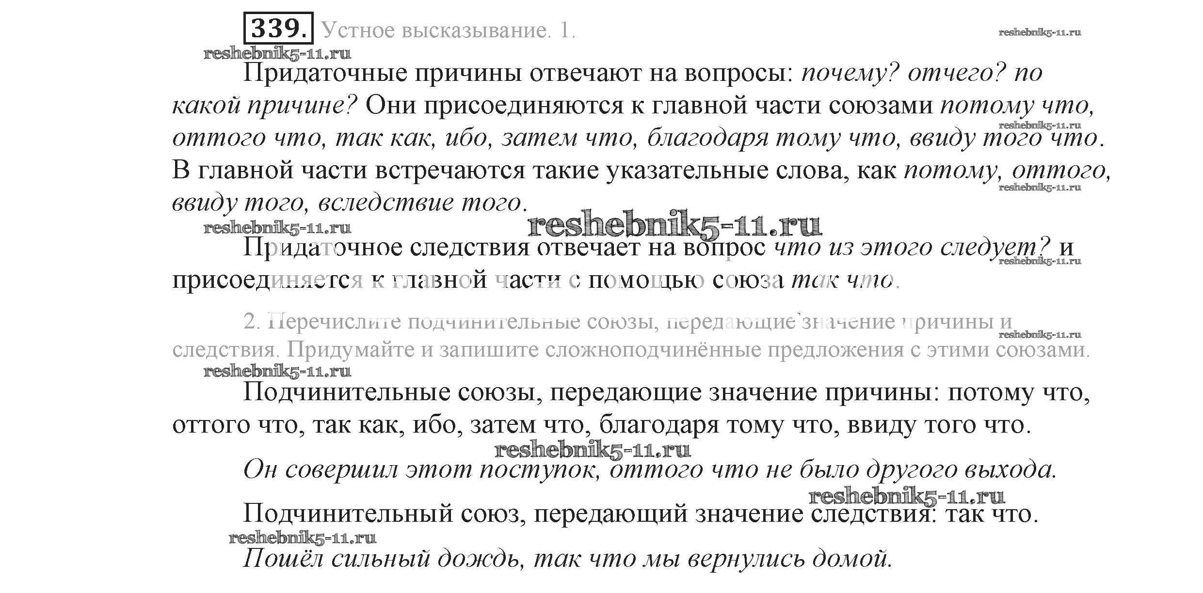 Готовая домашняя работа с ответами по Русскому языку за 9 класс Львова, Львов Учебник Мнемозина 2016 ФГОС - Упражнения 339