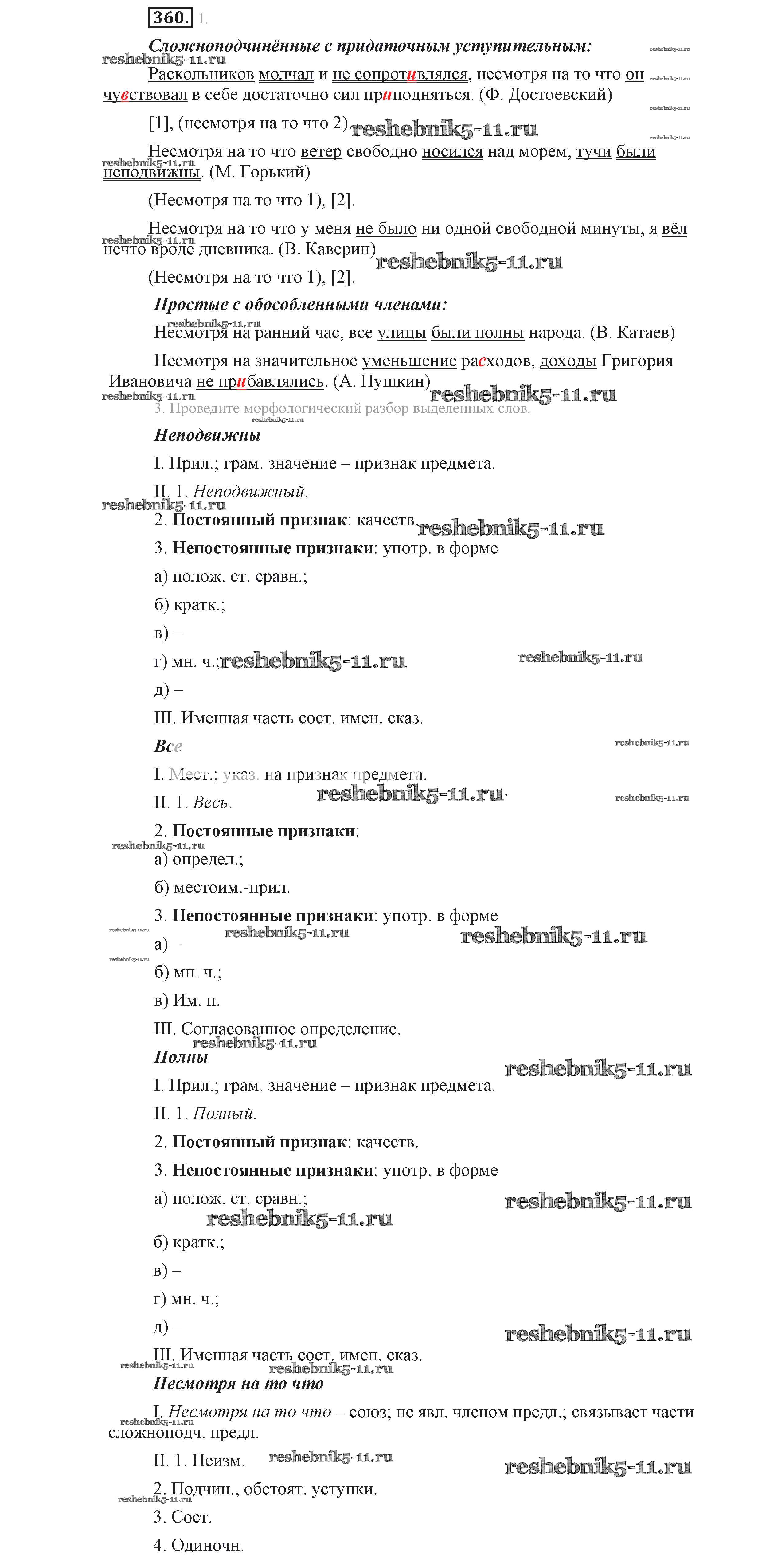Готовая домашняя работа с ответами по Русскому языку за 9 класс Львова, Львов Учебник Мнемозина 2016 ФГОС - Упражнения 360