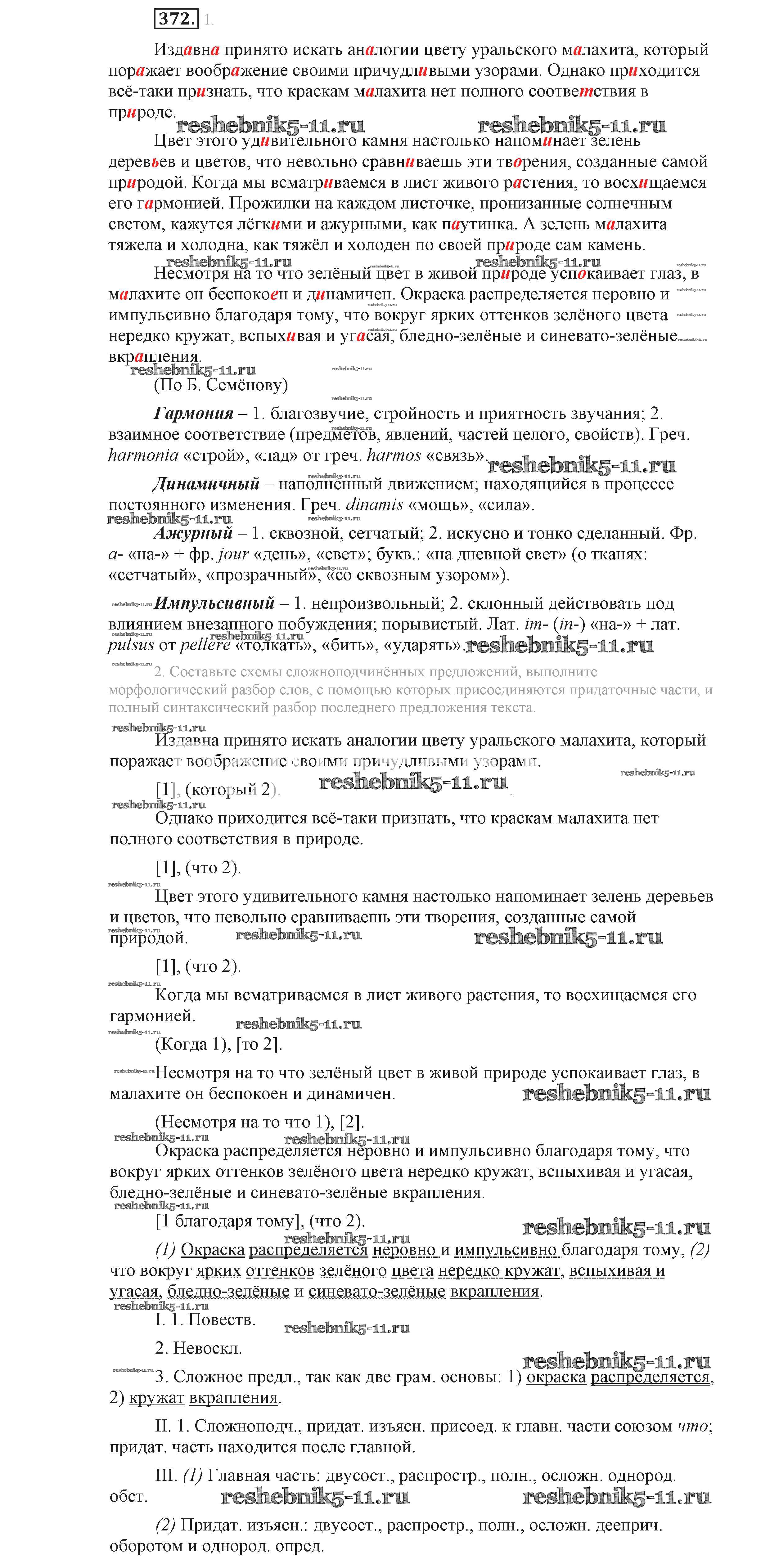 Готовая домашняя работа с ответами по Русскому языку за 9 класс Львова, Львов Учебник Мнемозина 2016 ФГОС - Упражнения 372