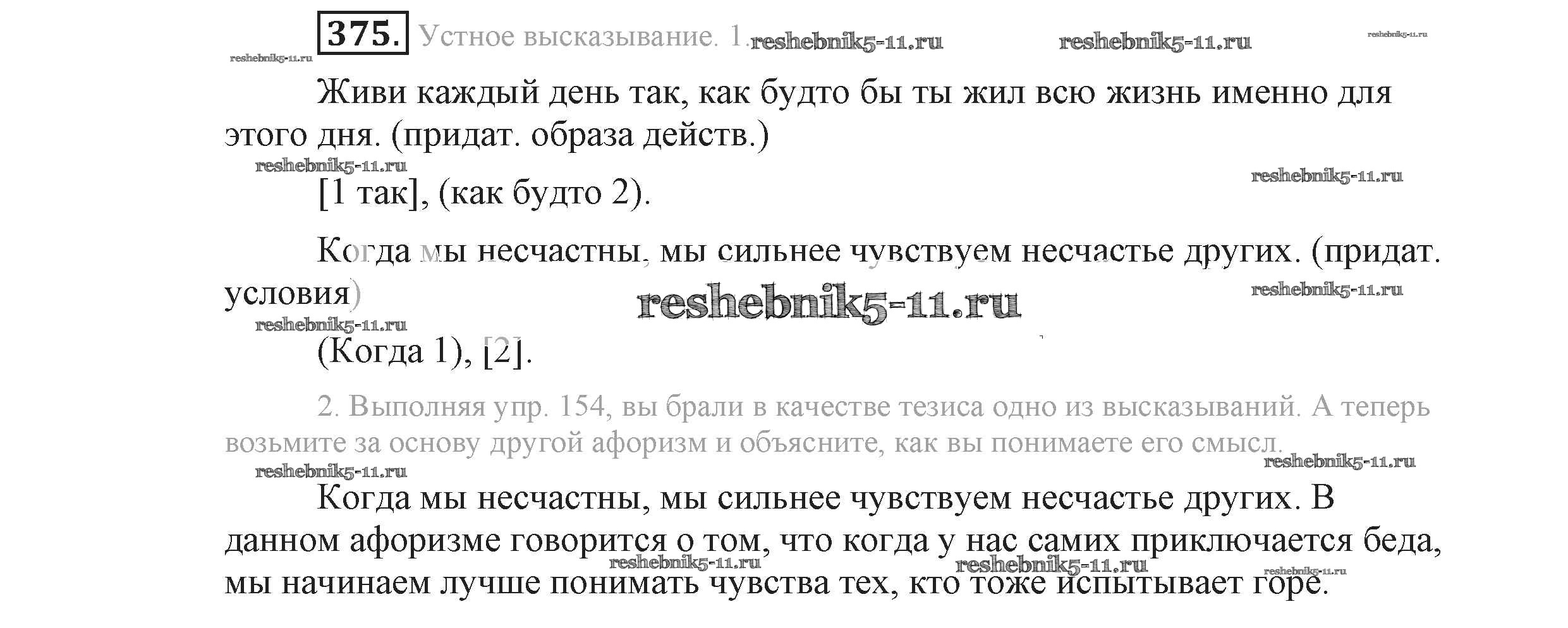 Готовая домашняя работа с ответами по Русскому языку за 9 класс Львова, Львов Учебник Мнемозина 2016 ФГОС - Упражнения 375