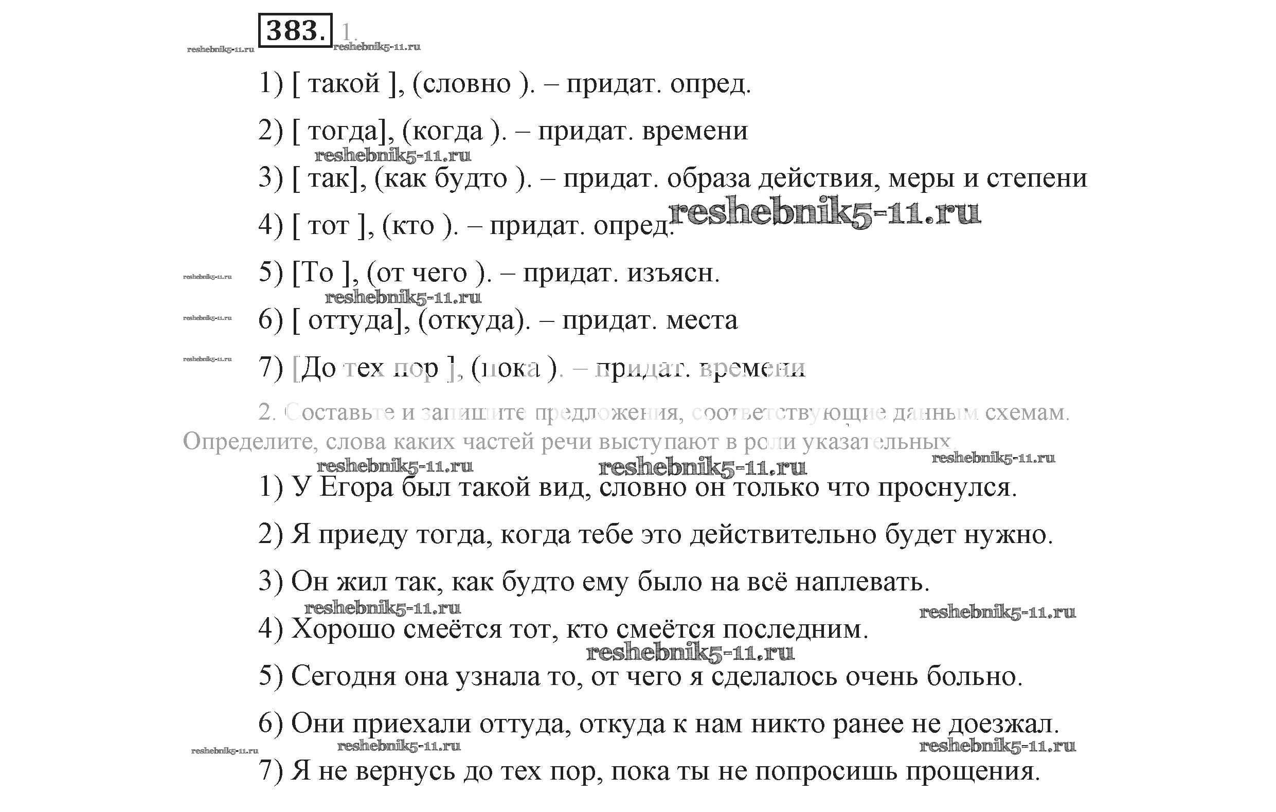 Готовая домашняя работа с ответами по Русскому языку за 9 класс Львова, Львов Учебник Мнемозина 2016 ФГОС - Упражнения 383
