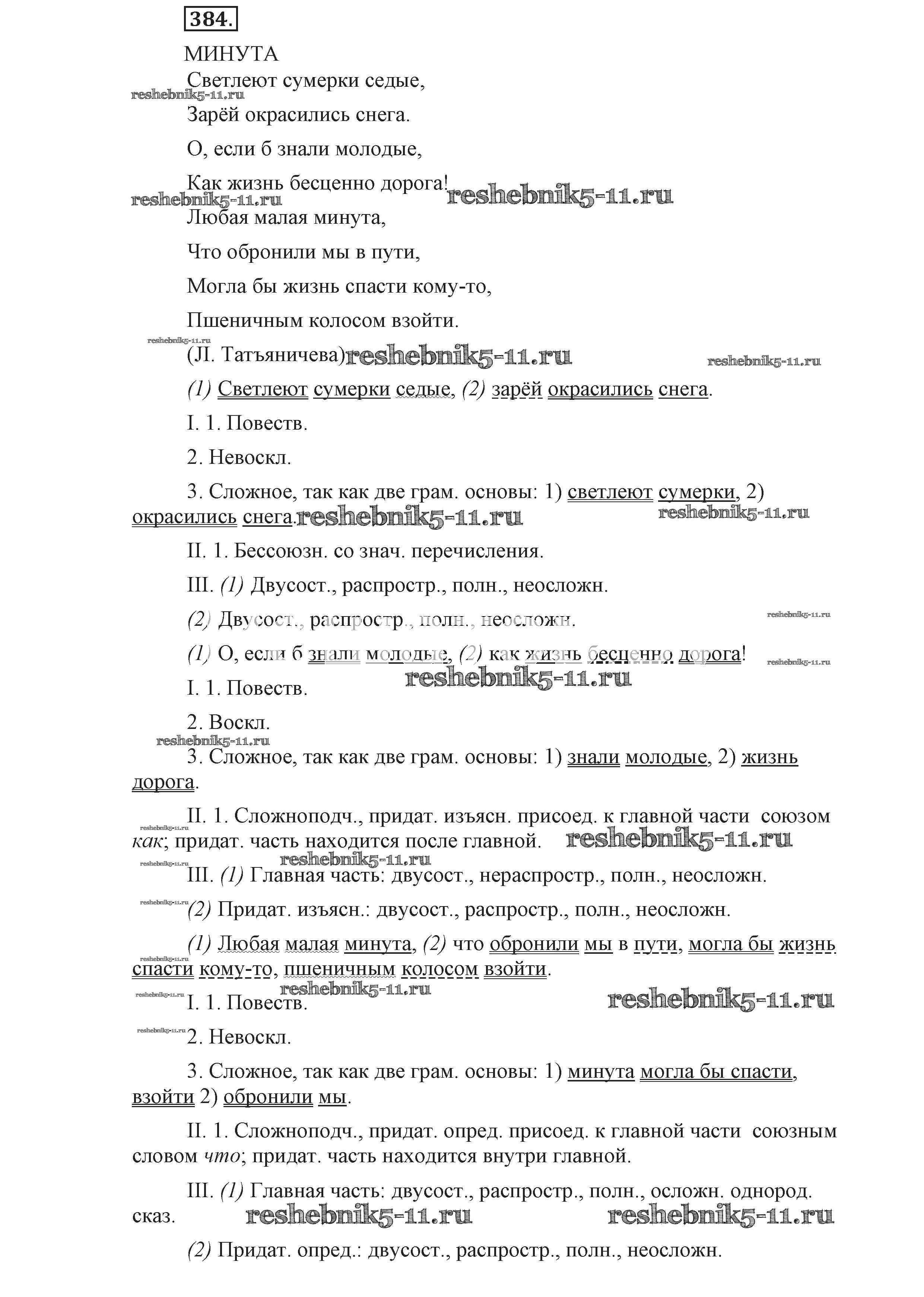 Готовая домашняя работа с ответами по Русскому языку за 9 класс Львова, Львов Учебник Мнемозина 2016 ФГОС - Упражнения 384