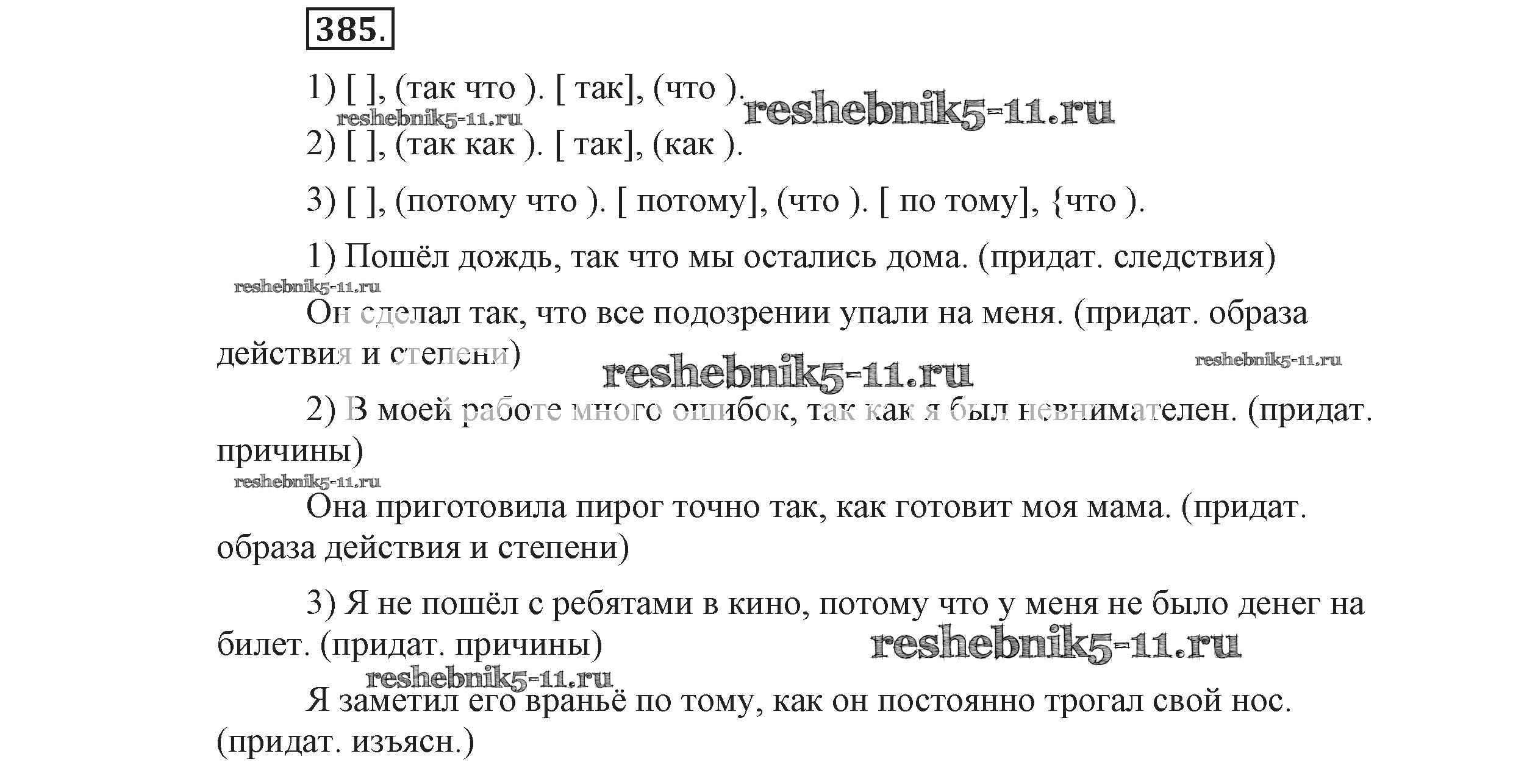 Готовая домашняя работа с ответами по Русскому языку за 9 класс Львова, Львов Учебник Мнемозина 2016 ФГОС - Упражнения 385