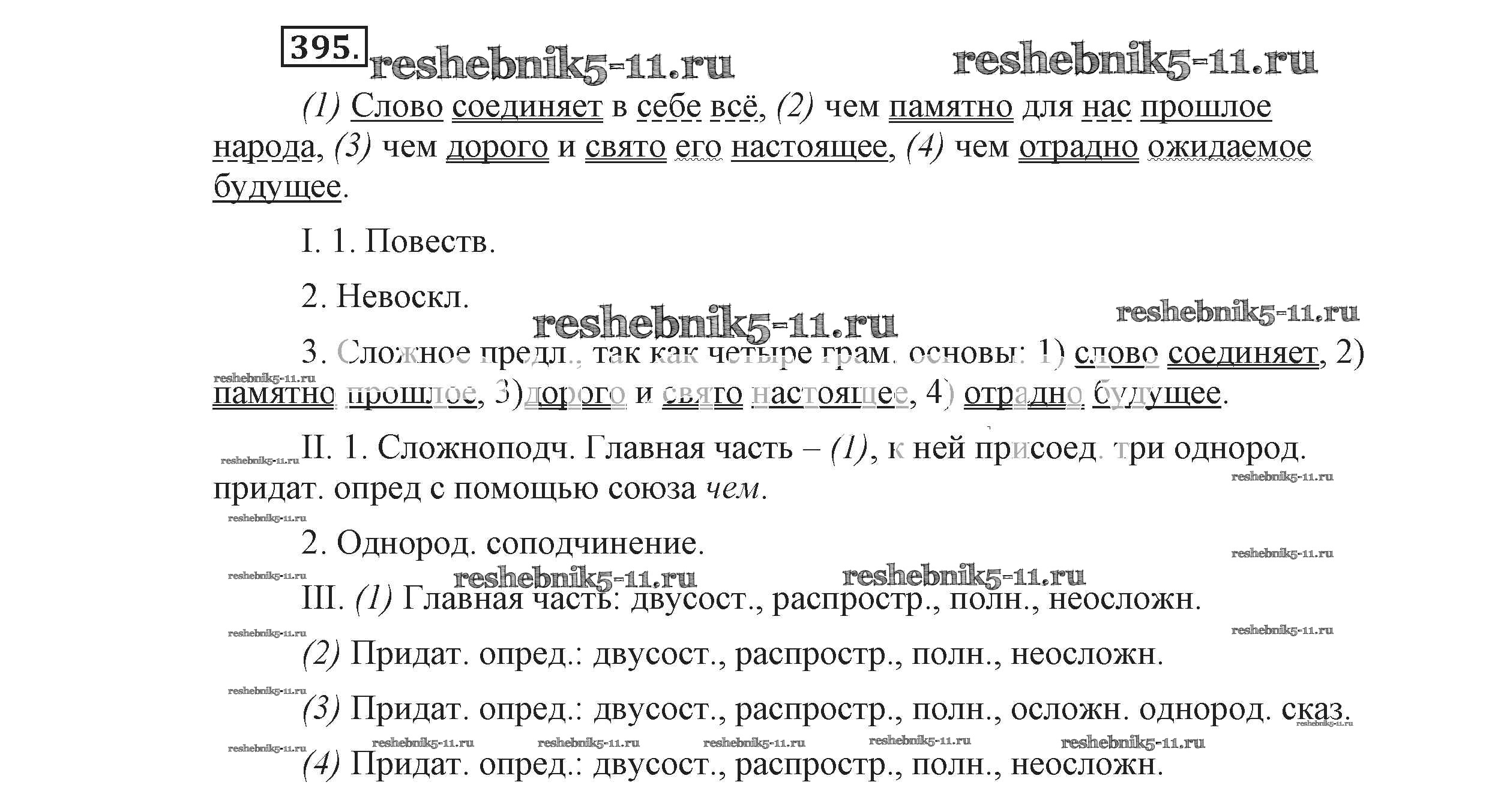 Готовая домашняя работа с ответами по Русскому языку за 9 класс Львова, Львов Учебник Мнемозина 2016 ФГОС - Упражнения 395