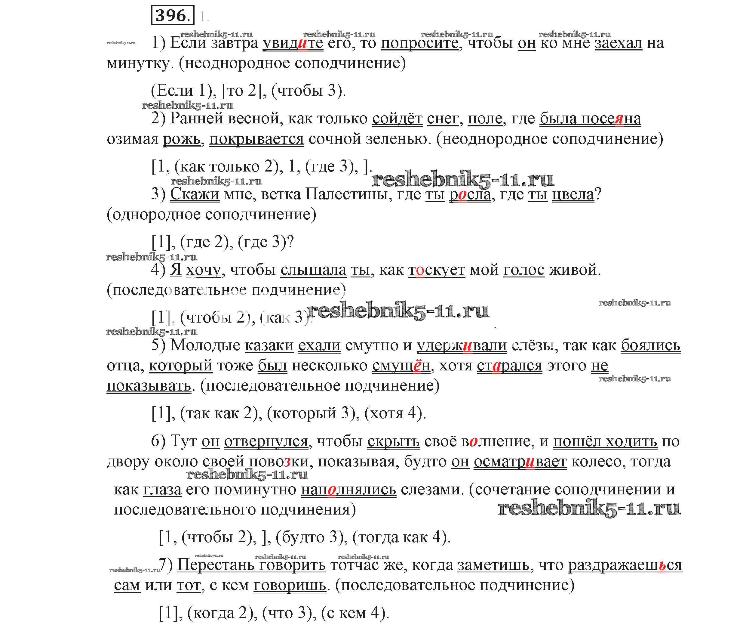 Готовая домашняя работа с ответами по Русскому языку за 9 класс Львова, Львов Учебник Мнемозина 2016 ФГОС - Упражнения 396