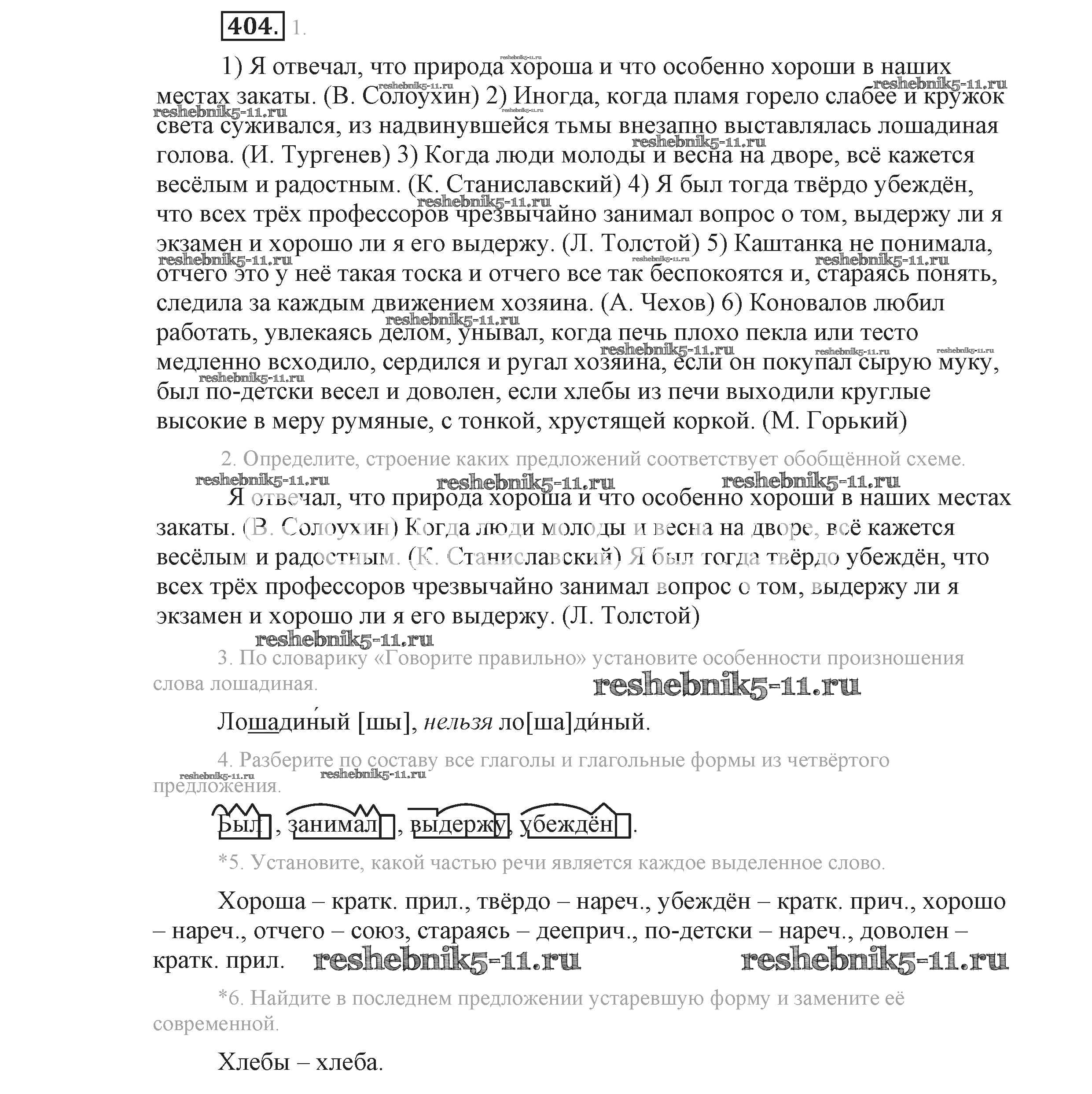 Готовая домашняя работа с ответами по Русскому языку за 9 класс Львова, Львов Учебник Мнемозина 2016 ФГОС - Упражнения 404