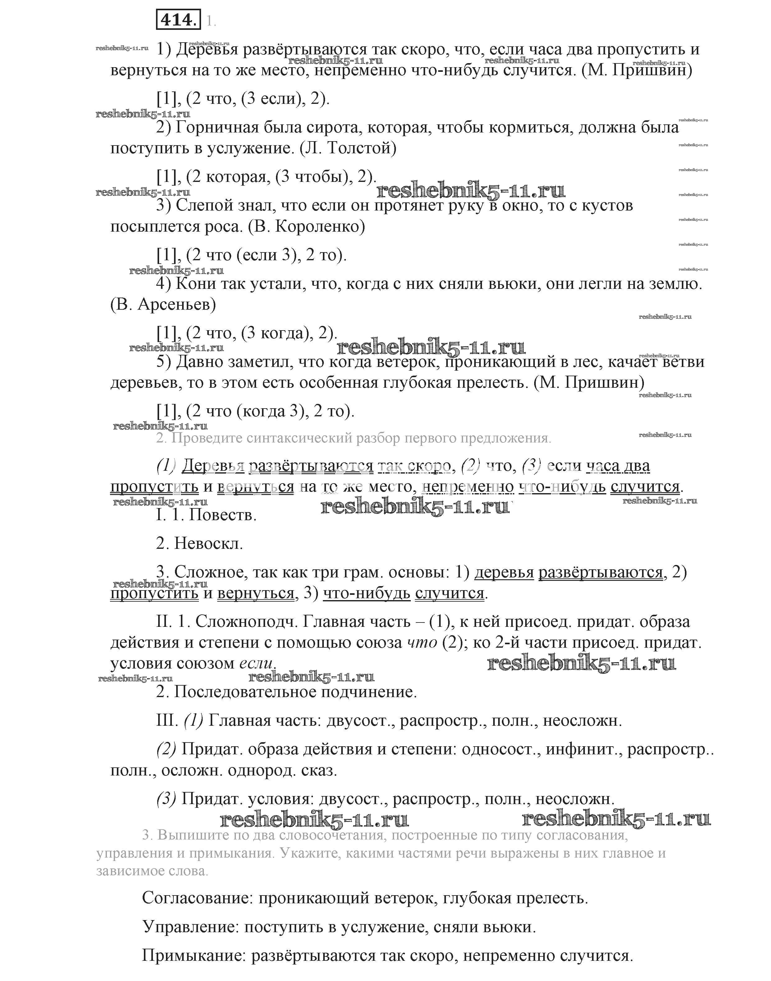 Готовая домашняя работа с ответами по Русскому языку за 9 класс Львова, Львов Учебник Мнемозина 2016 ФГОС - Упражнения 414