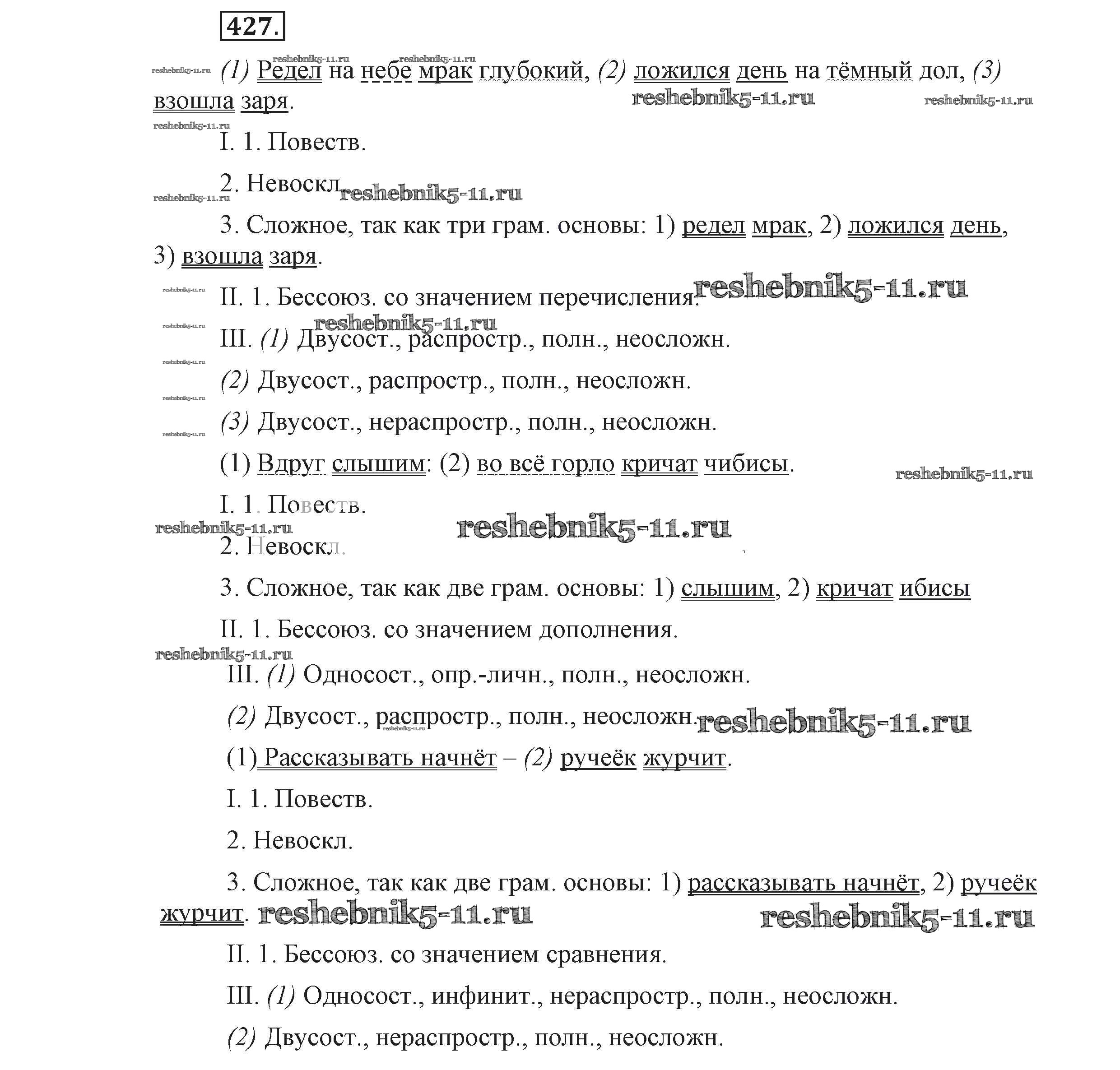 Готовая домашняя работа с ответами по Русскому языку за 9 класс Львова, Львов Учебник Мнемозина 2016 ФГОС - Упражнения 427