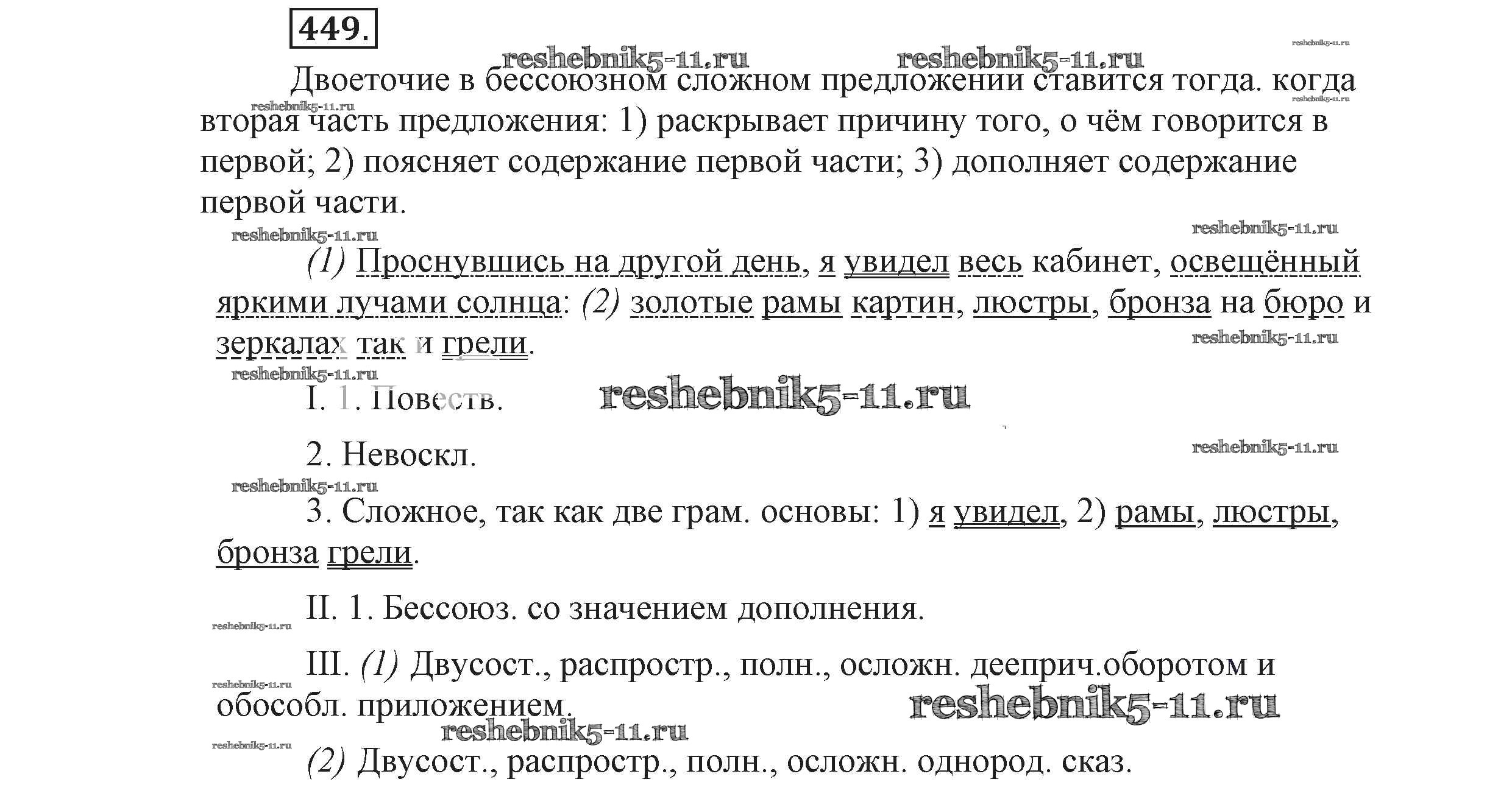 Готовая домашняя работа с ответами по Русскому языку за 9 класс Львова, Львов Учебник Мнемозина 2016 ФГОС - Упражнения 449