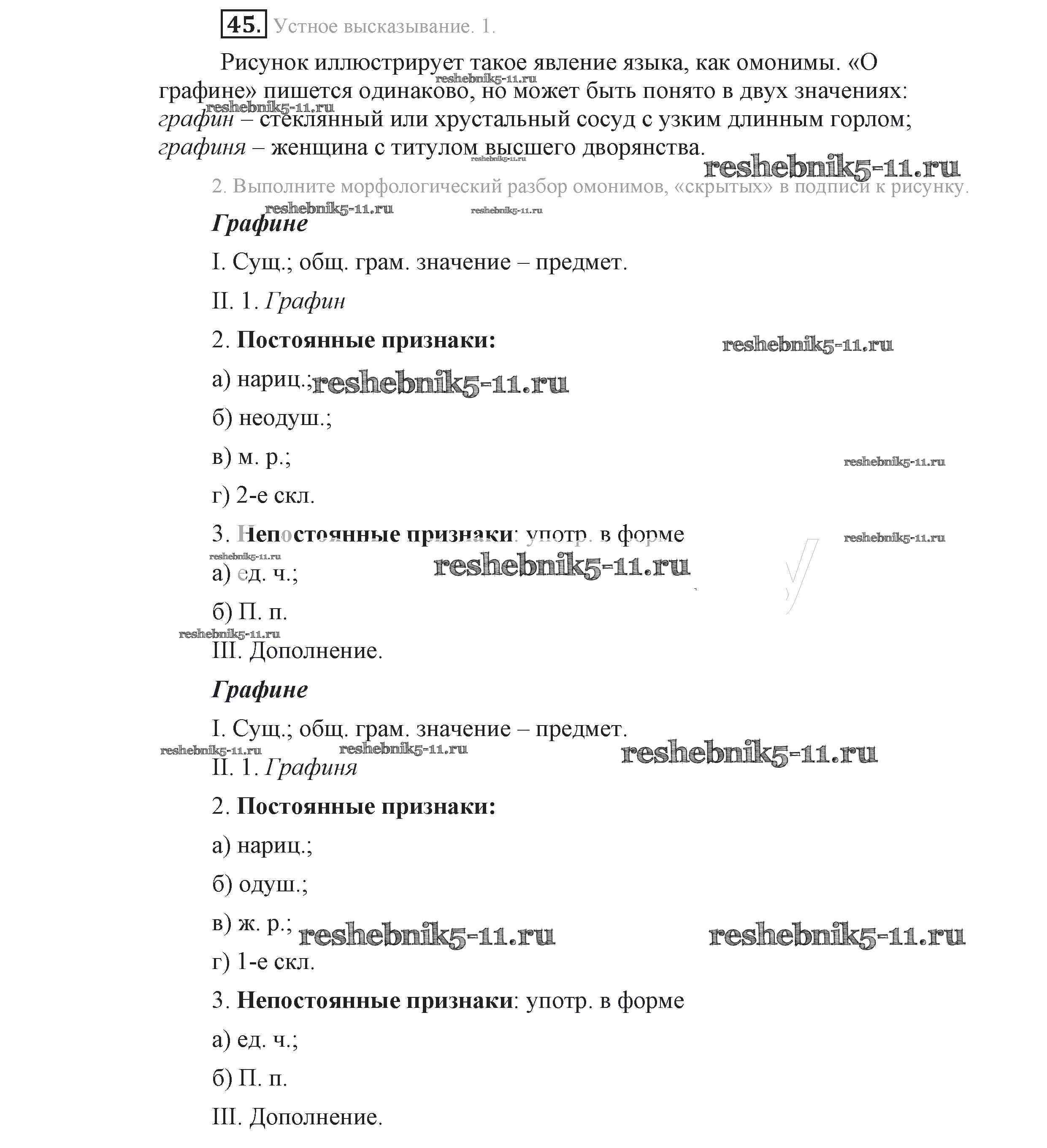 Готовая домашняя работа с ответами по Русскому языку за 9 класс Львова, Львов Учебник Мнемозина 2016 ФГОС - Упражнения 45