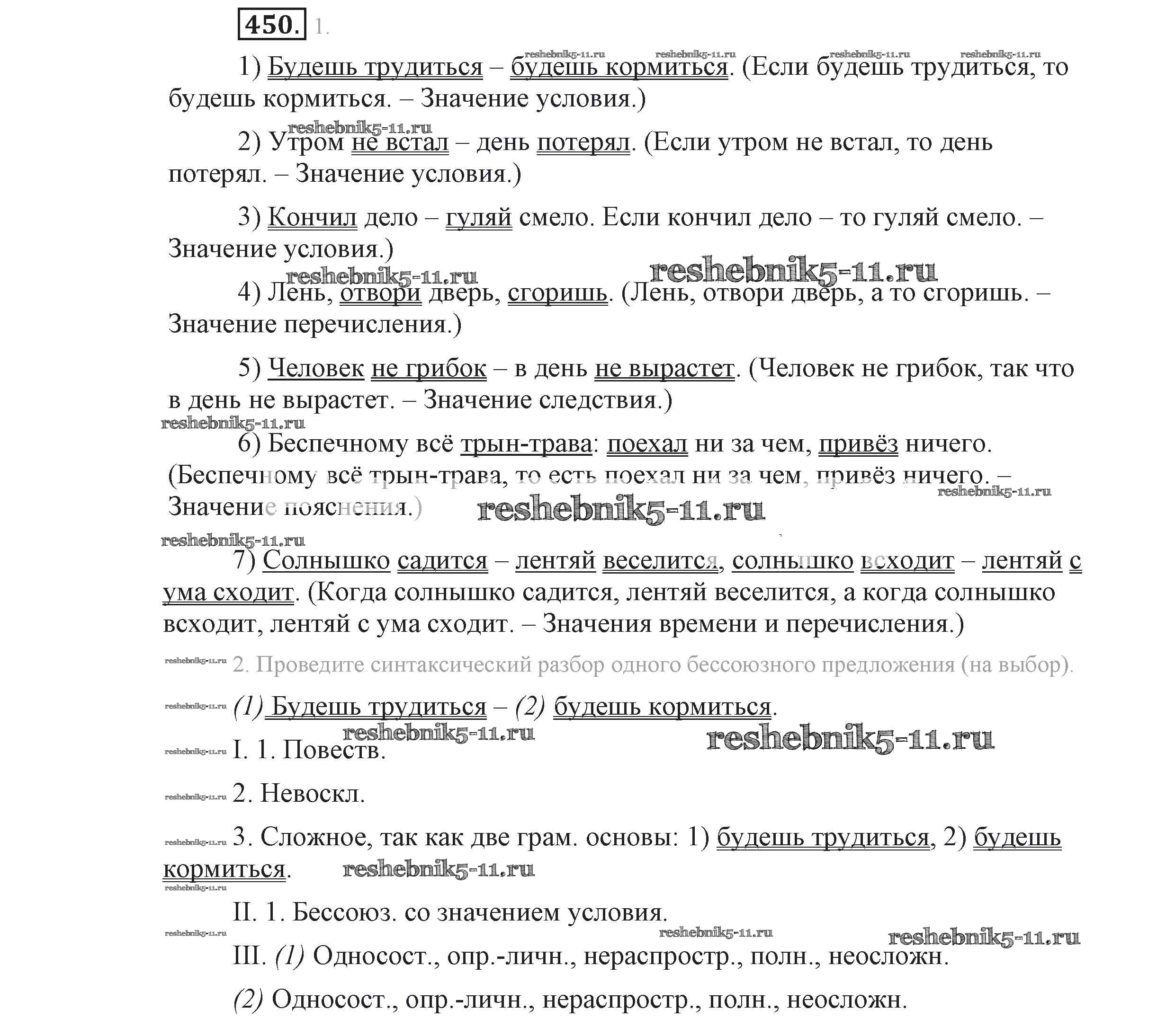 Готовая домашняя работа с ответами по Русскому языку за 9 класс Львова, Львов Учебник Мнемозина 2016 ФГОС - Упражнения 450