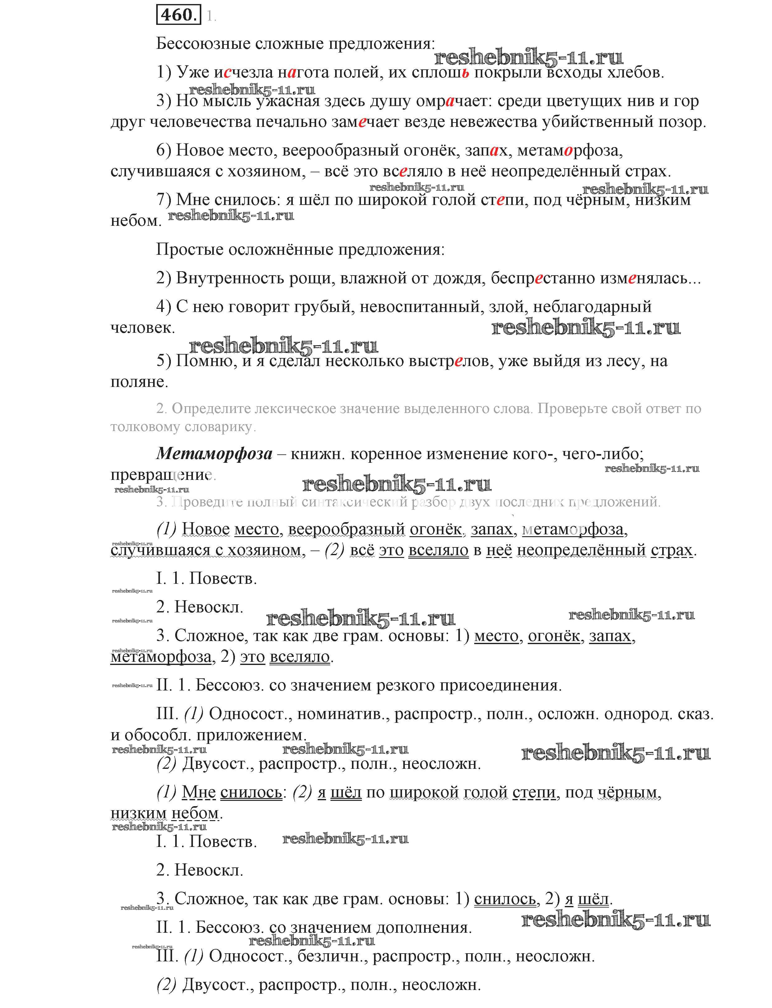 Готовая домашняя работа с ответами по Русскому языку за 9 класс Львова, Львов Учебник Мнемозина 2016 ФГОС - Упражнения 460