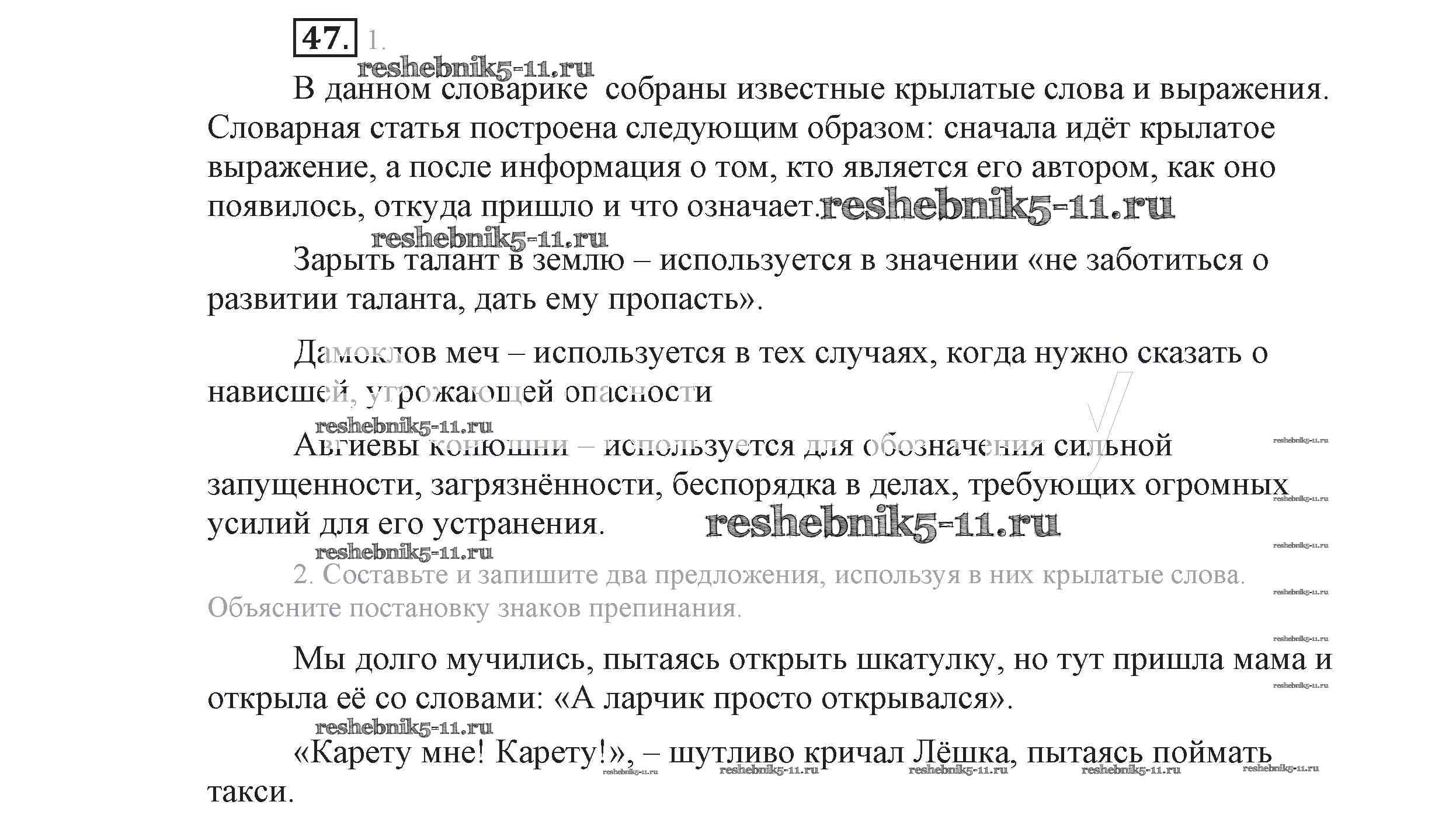 Готовая домашняя работа с ответами по Русскому языку за 9 класс Львова, Львов Учебник Мнемозина 2016 ФГОС - Упражнения 47