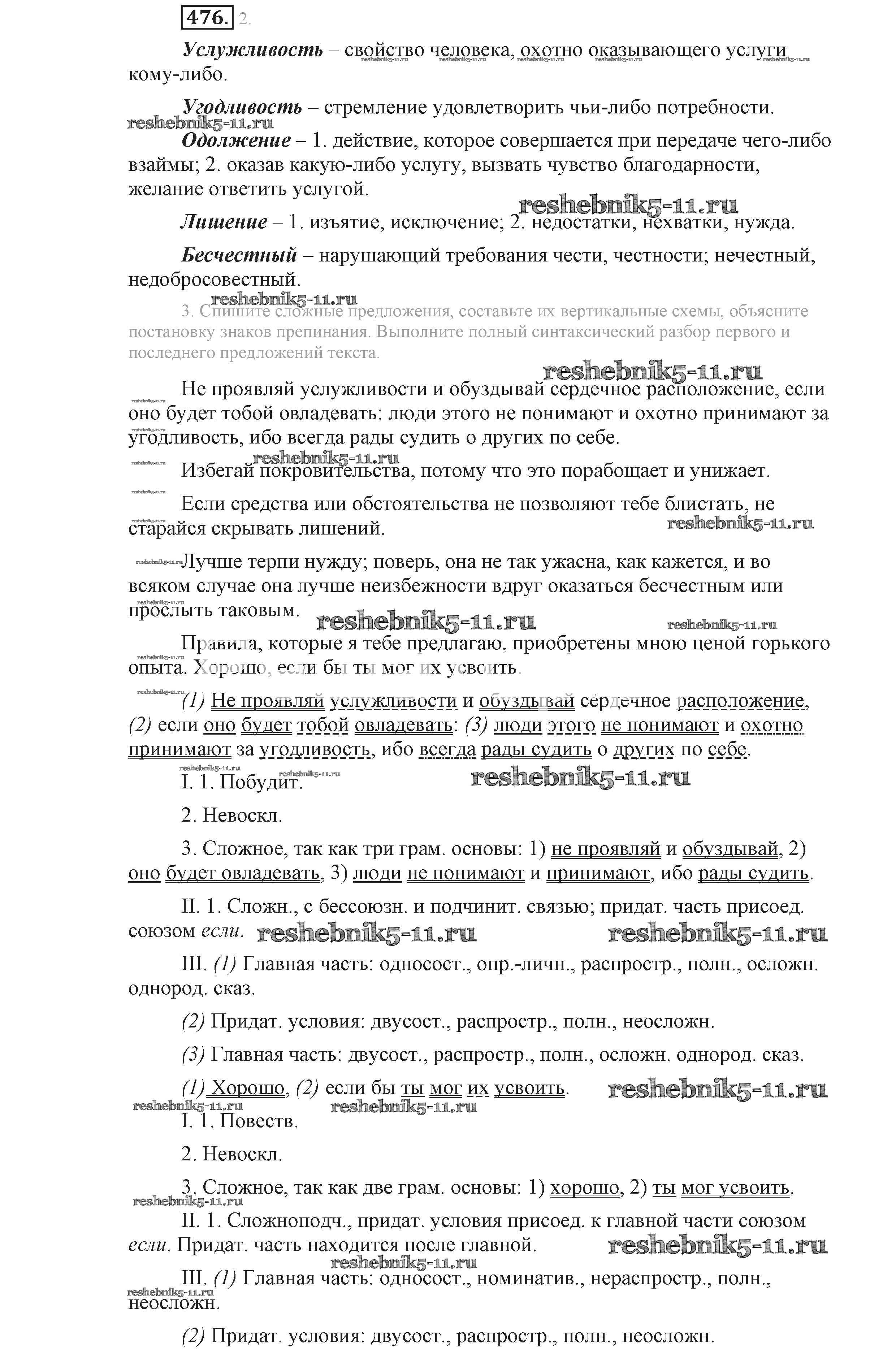Готовая домашняя работа с ответами по Русскому языку за 9 класс Львова, Львов Учебник Мнемозина 2016 ФГОС - Упражнения 476