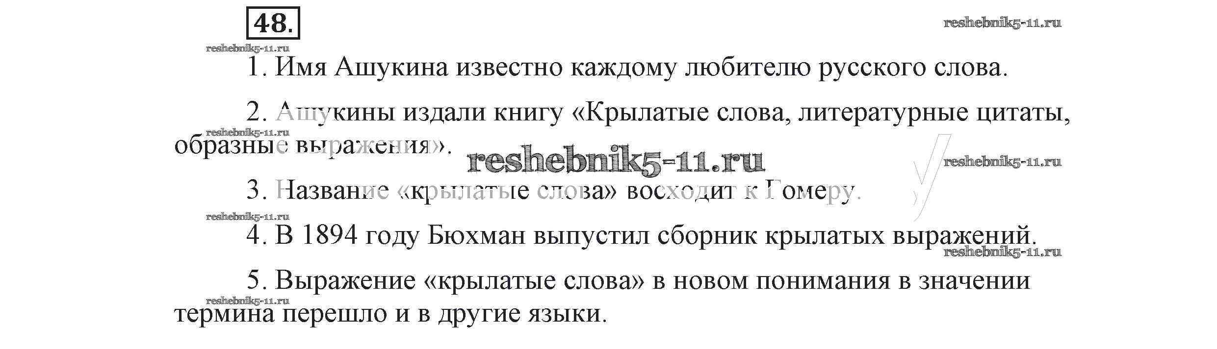 Готовая домашняя работа с ответами по Русскому языку за 9 класс Львова, Львов Учебник Мнемозина 2016 ФГОС - Упражнения 48