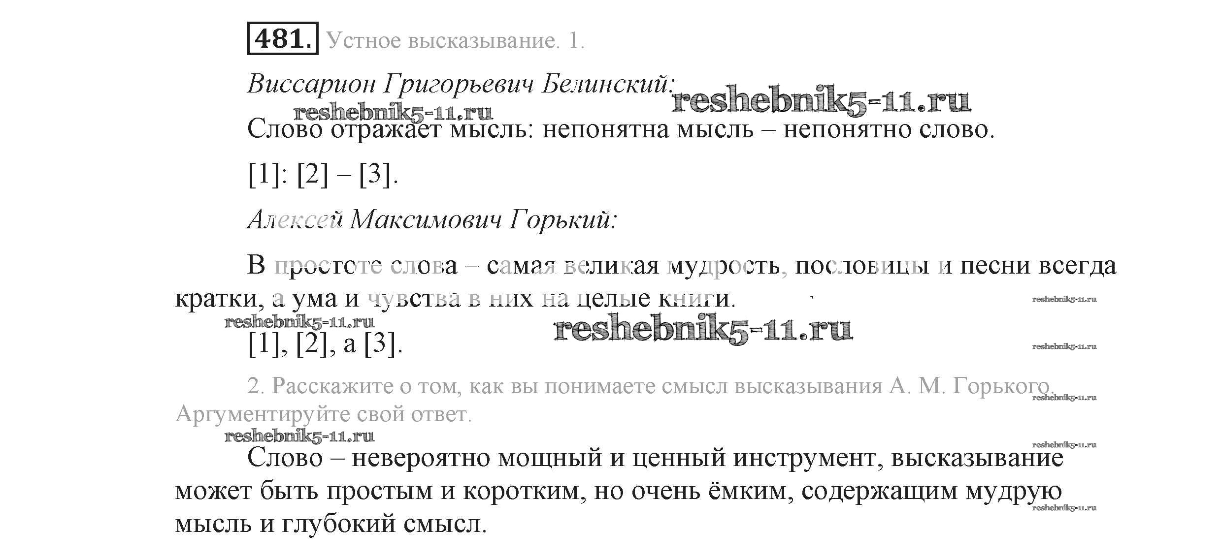 Готовая домашняя работа с ответами по Русскому языку за 9 класс Львова, Львов Учебник Мнемозина 2016 ФГОС - Упражнения 481