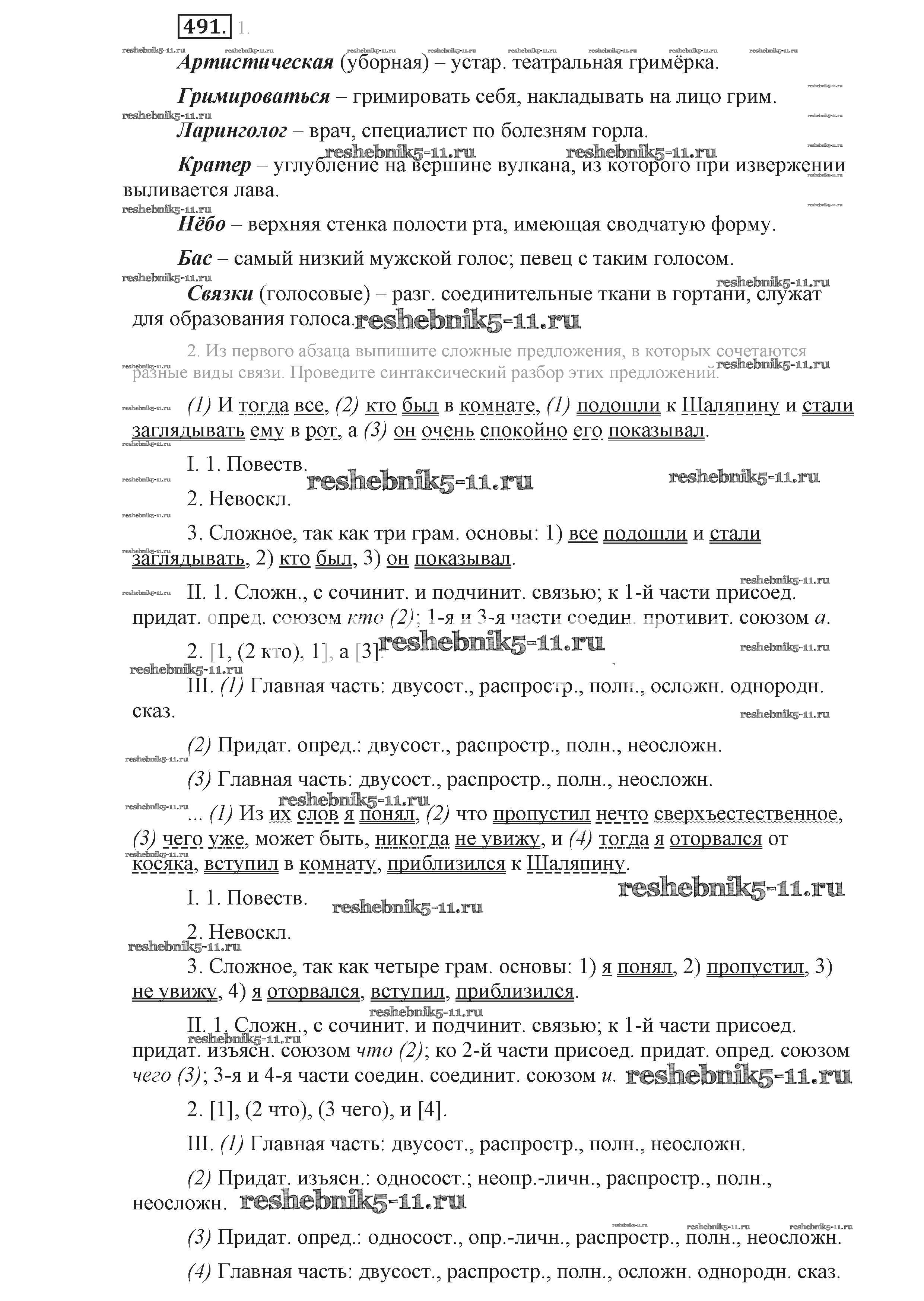 Готовая домашняя работа с ответами по Русскому языку за 9 класс Львова, Львов Учебник Мнемозина 2016 ФГОС - Упражнения 491