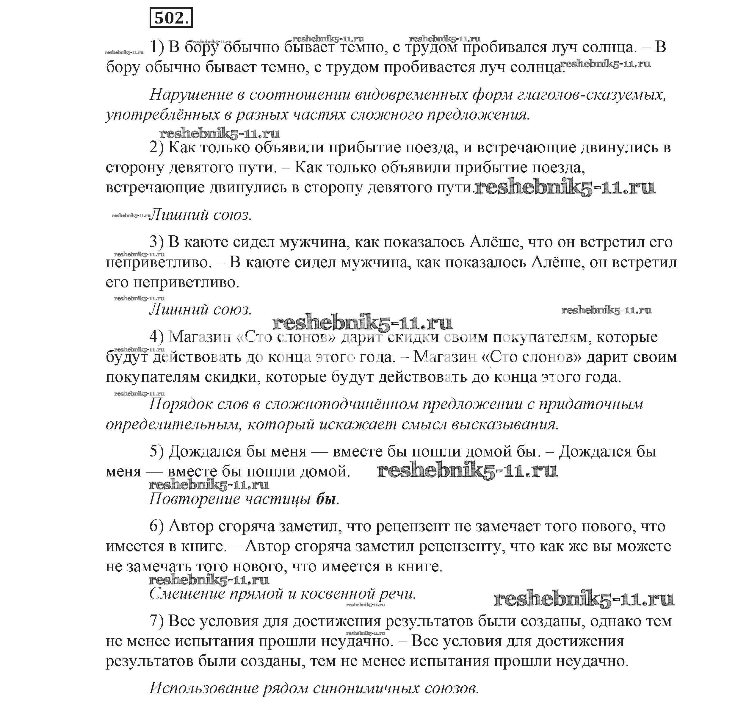 Готовая домашняя работа с ответами по Русскому языку за 9 класс Львова, Львов Учебник Мнемозина 2016 ФГОС - Упражнения 502