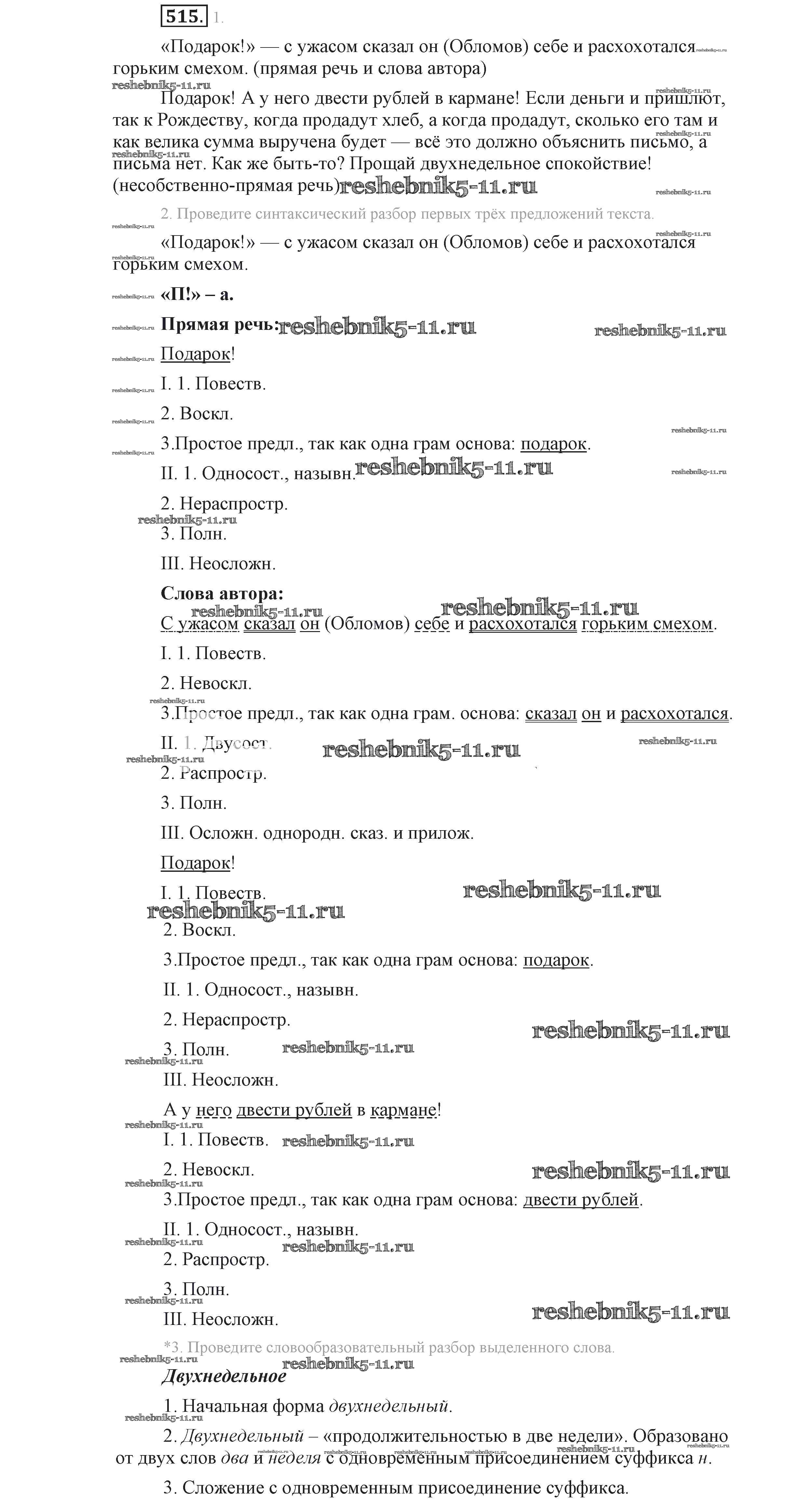 Готовая домашняя работа с ответами по Русскому языку за 9 класс Львова, Львов Учебник Мнемозина 2016 ФГОС - Упражнения 515