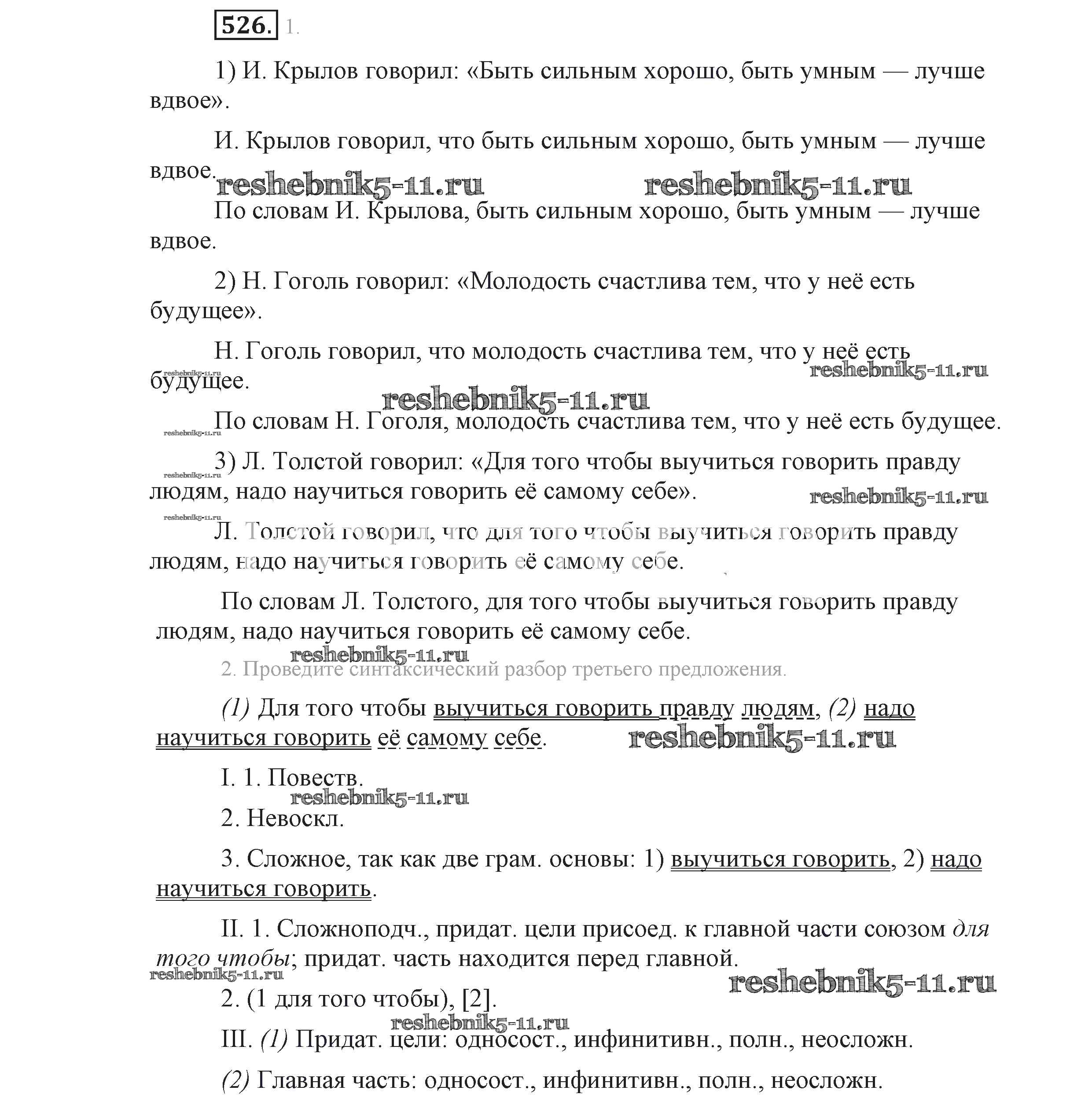 Готовая домашняя работа с ответами по Русскому языку за 9 класс Львова, Львов Учебник Мнемозина 2016 ФГОС - Упражнения 526
